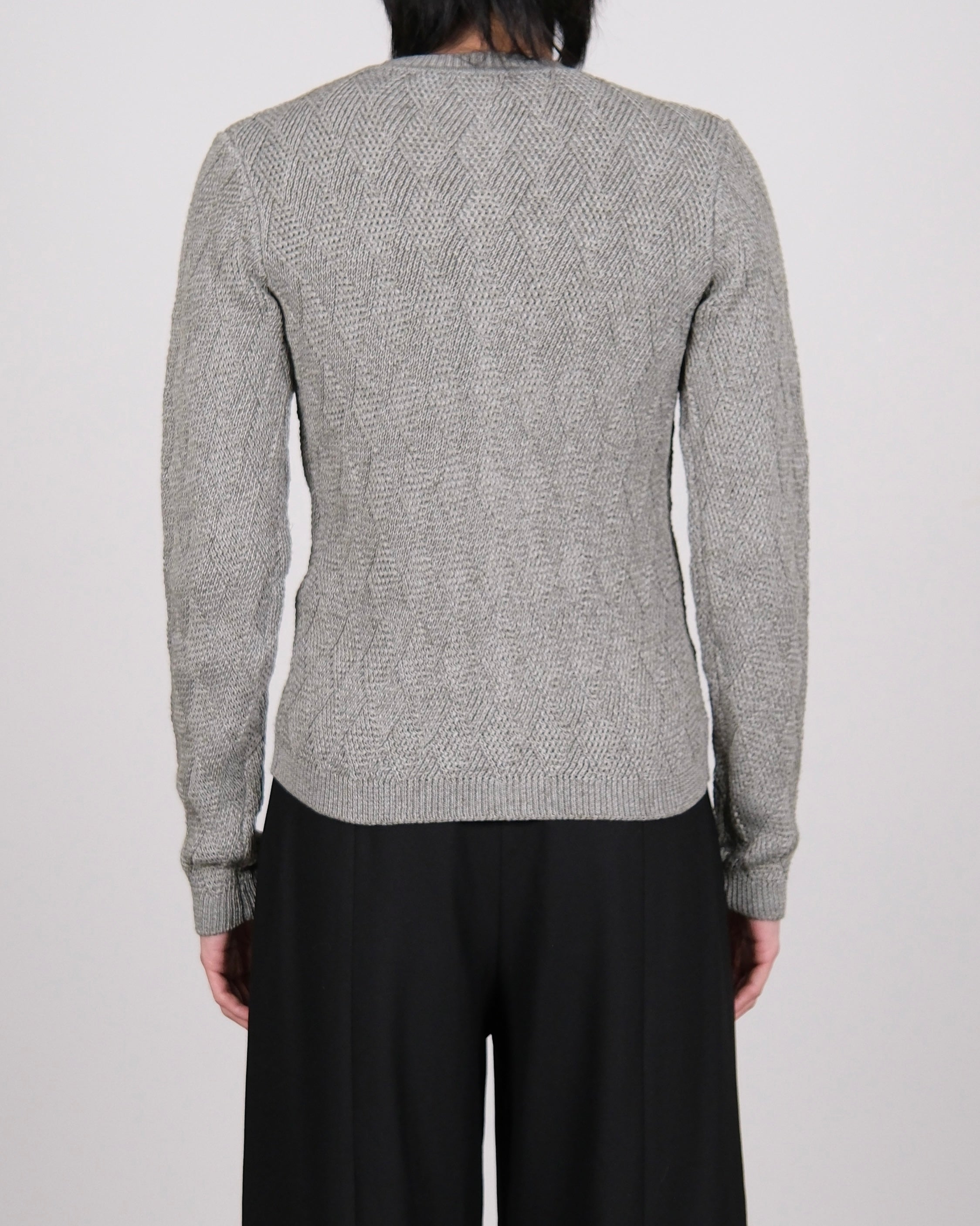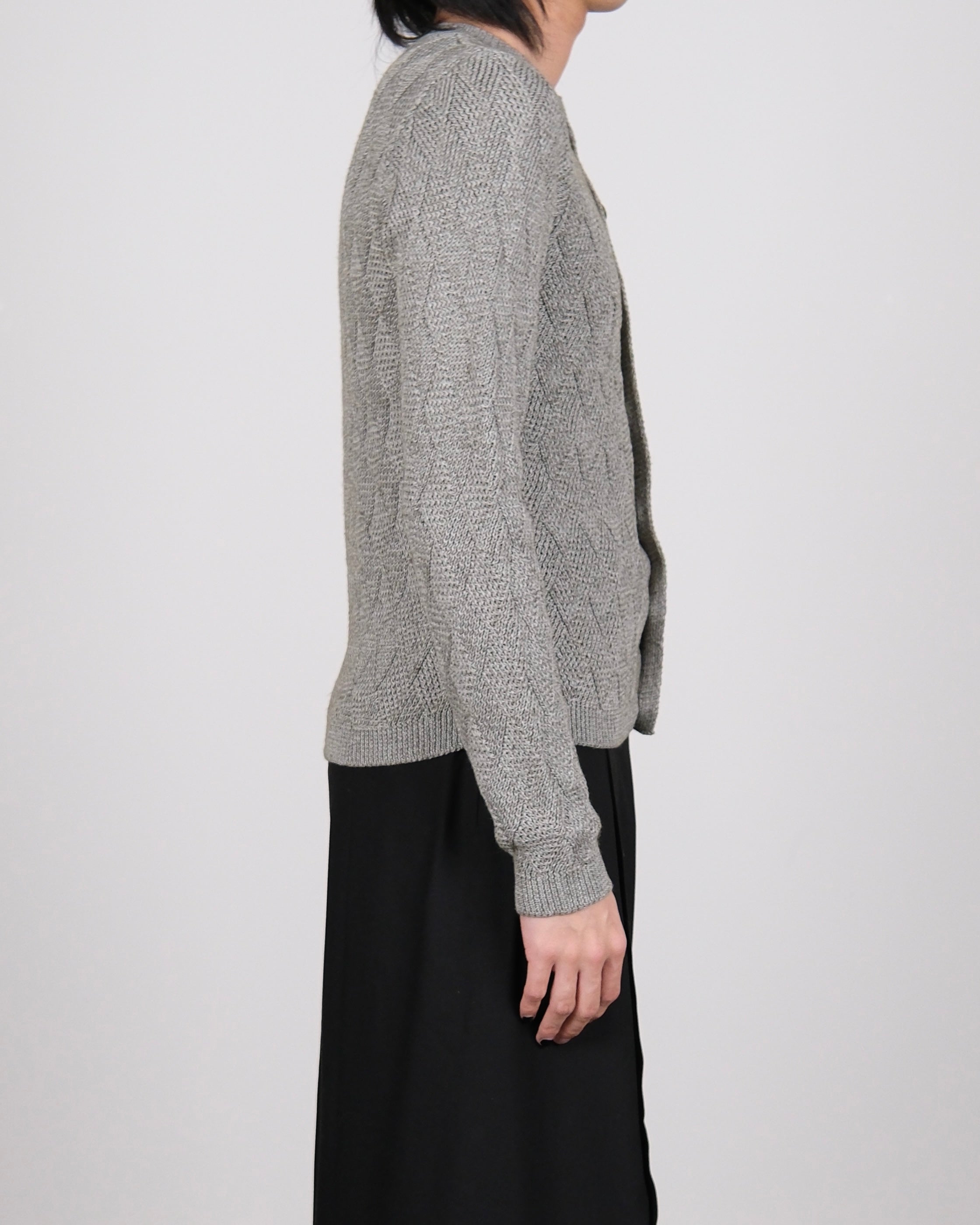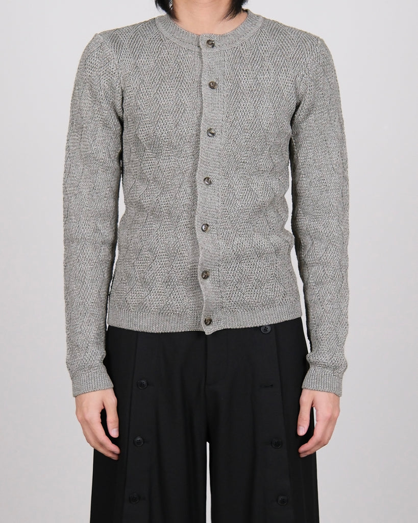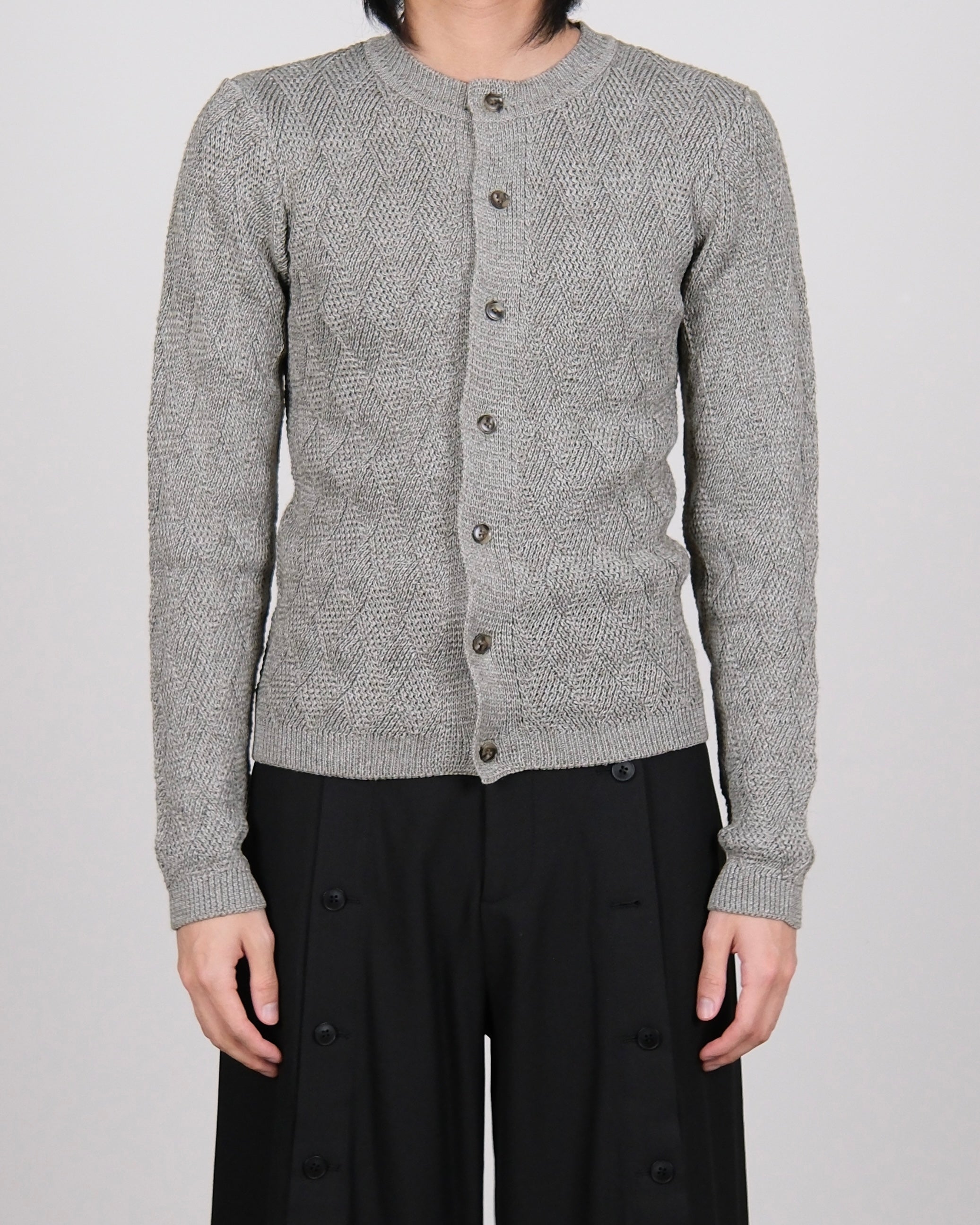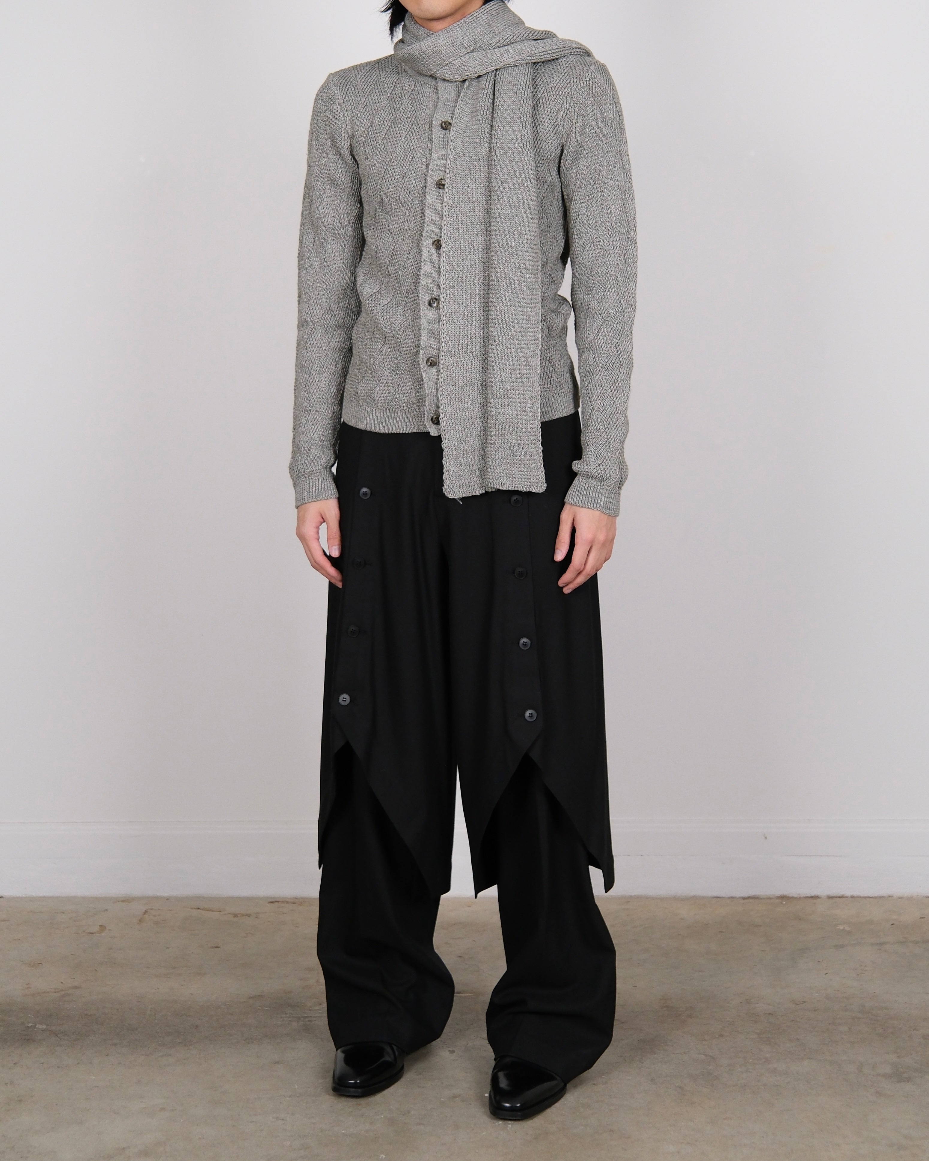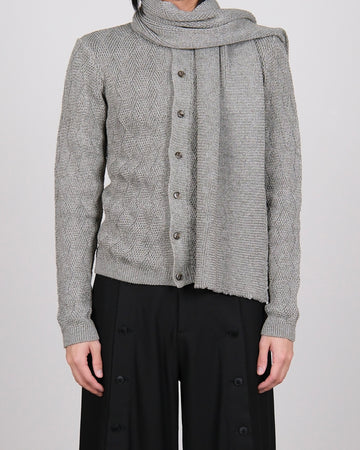 Woven Textured Knit Cardigan With Scarf Grey