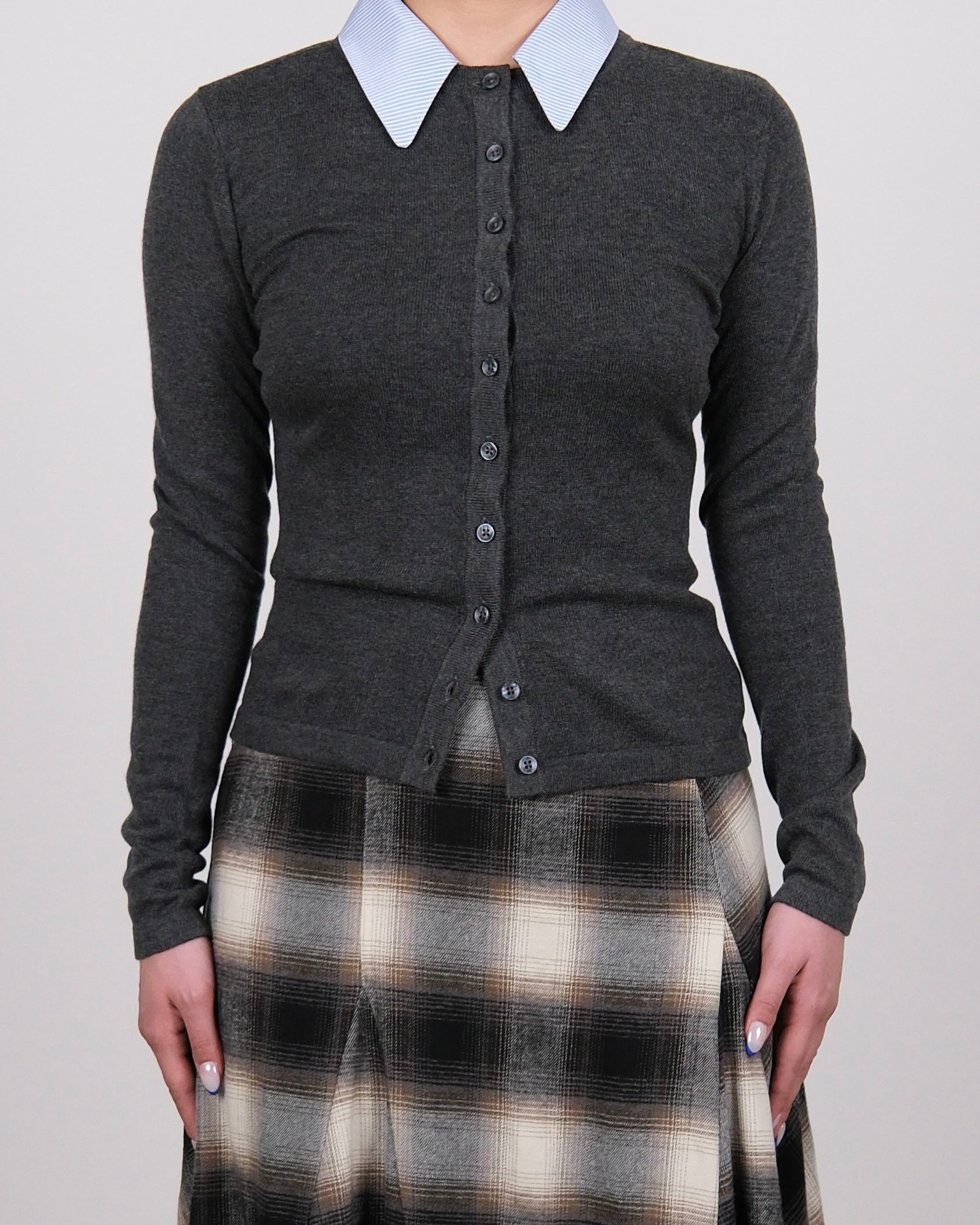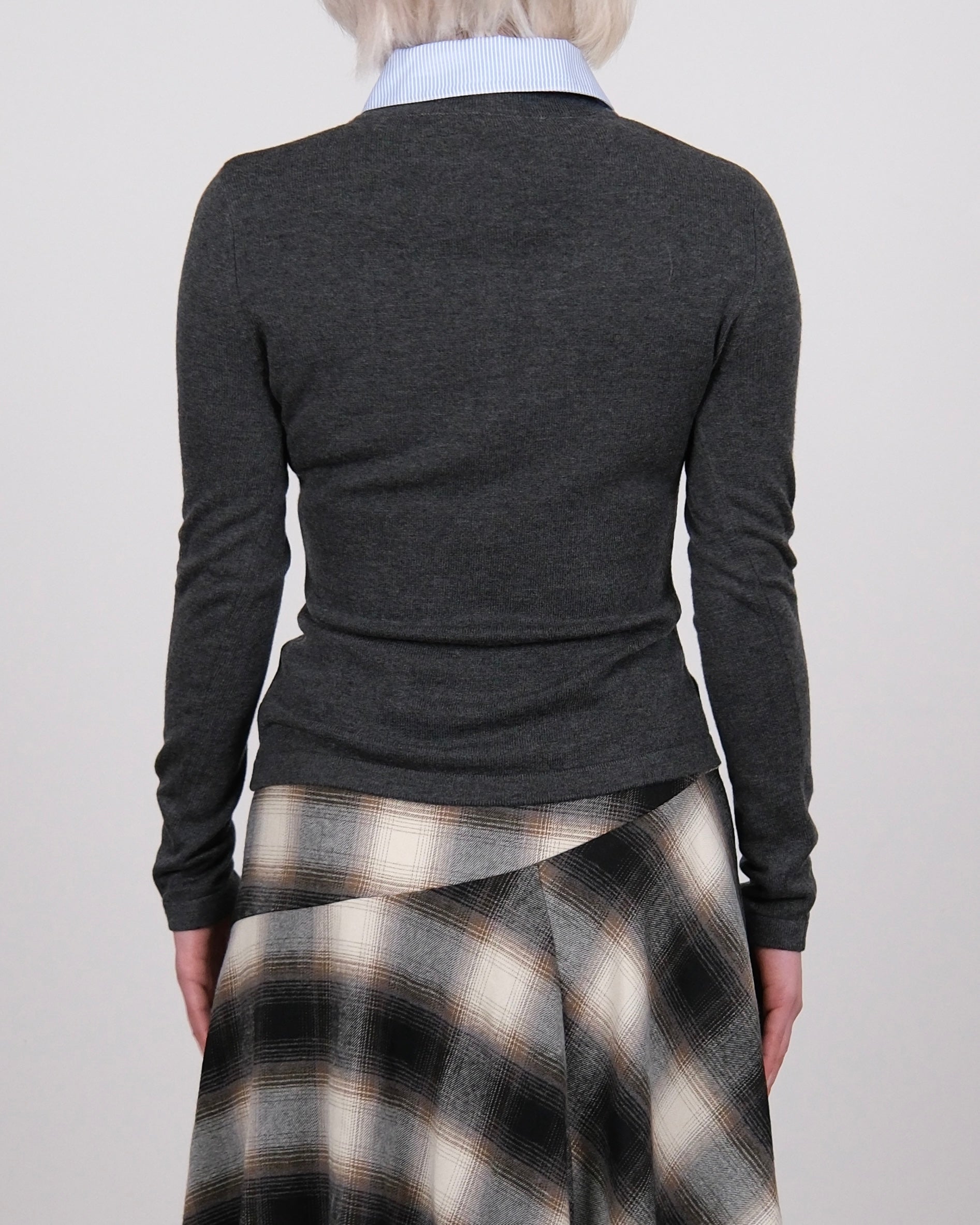 Detachable Collar Knit Cardigan Grey