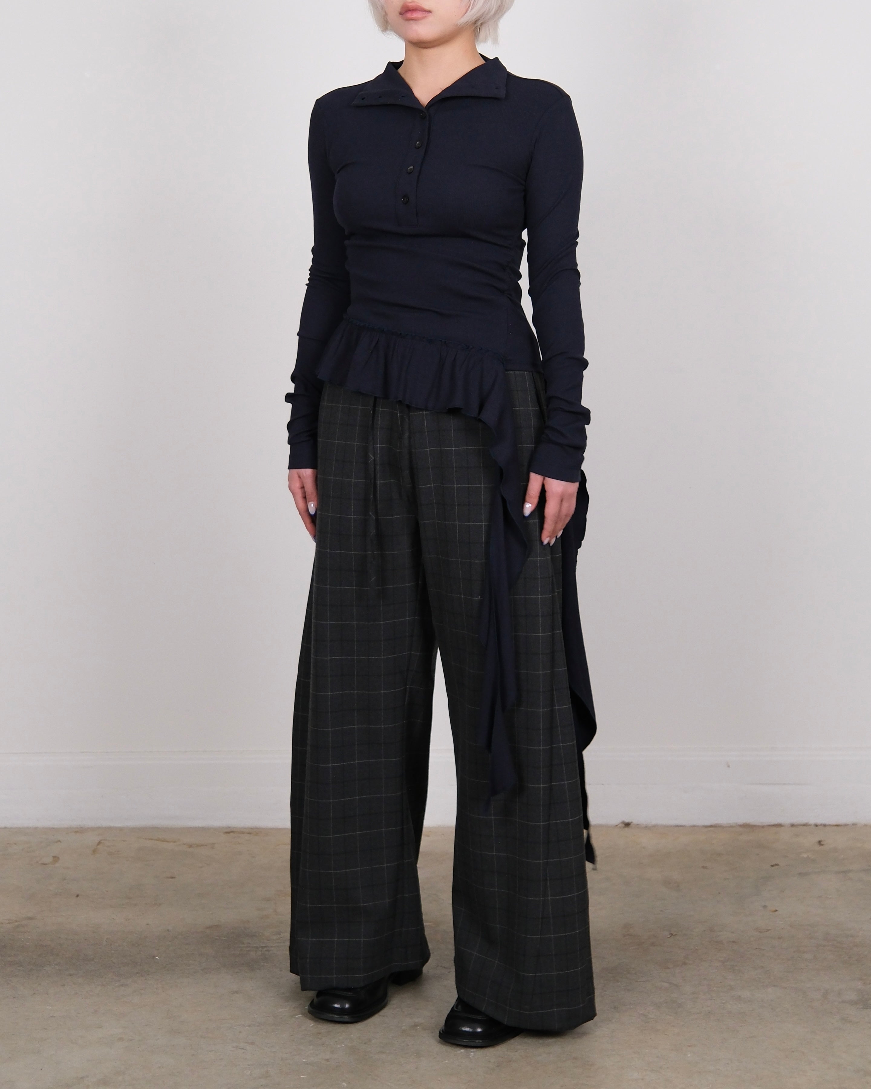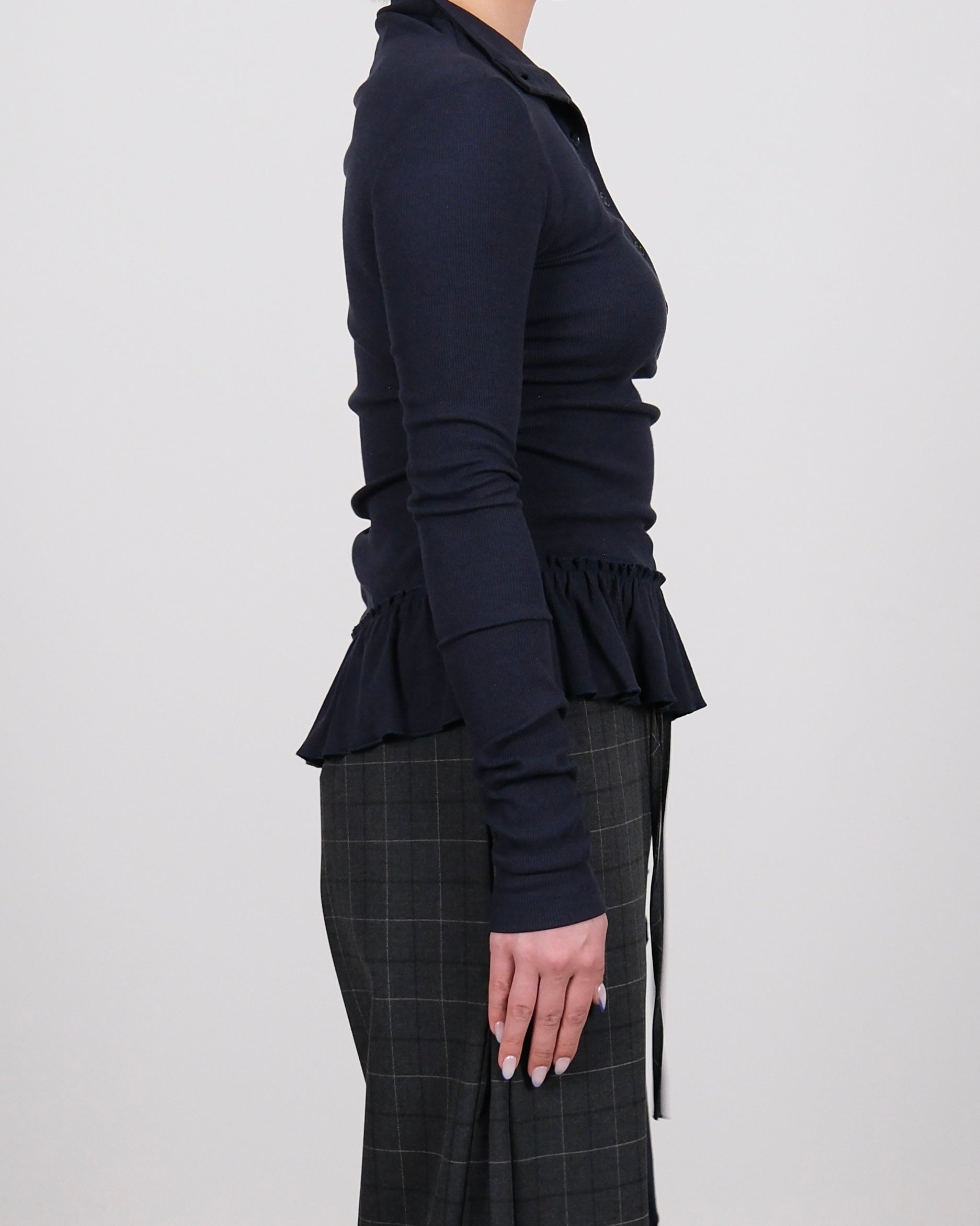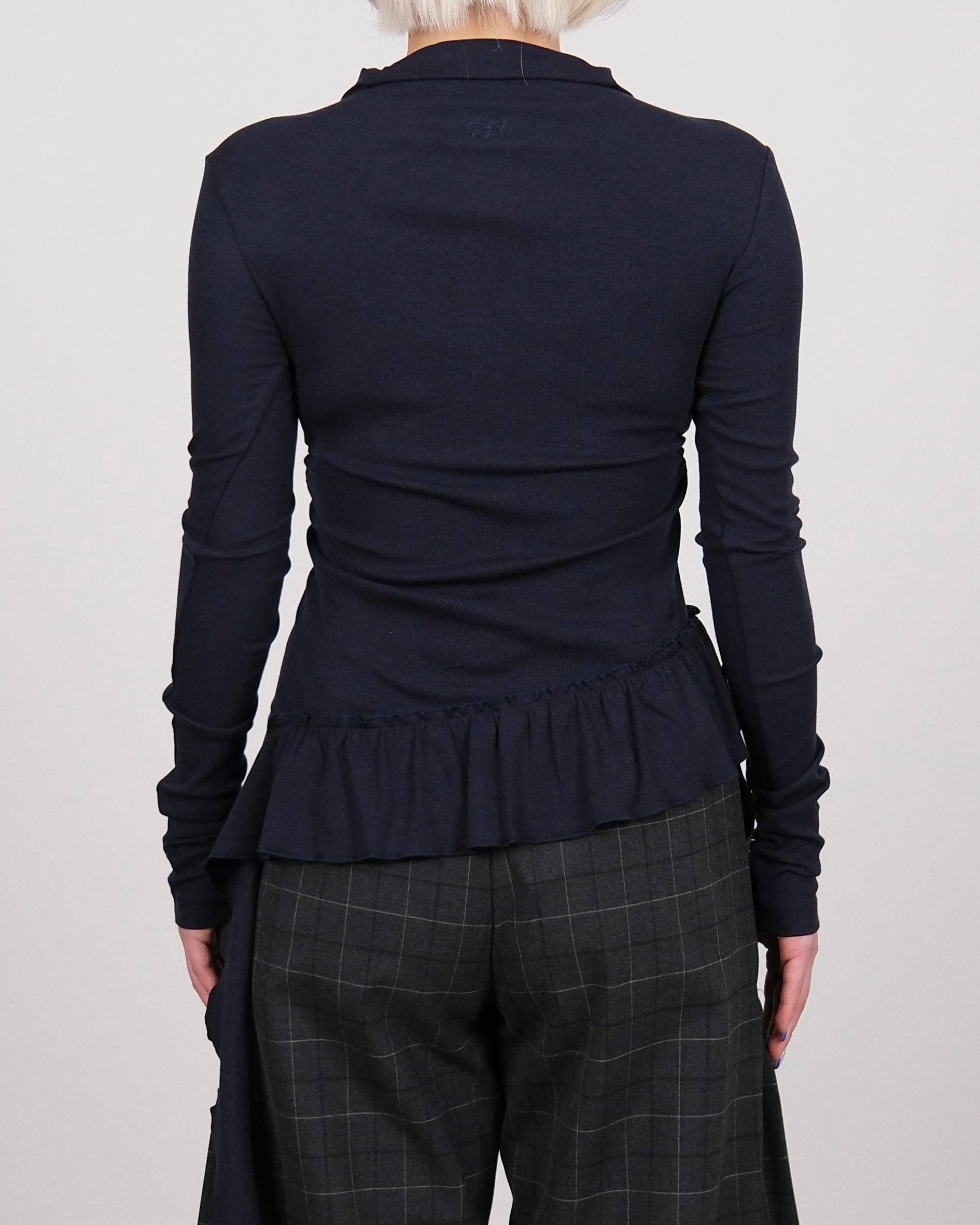 Henley Neck Raffled Knit Top Navy