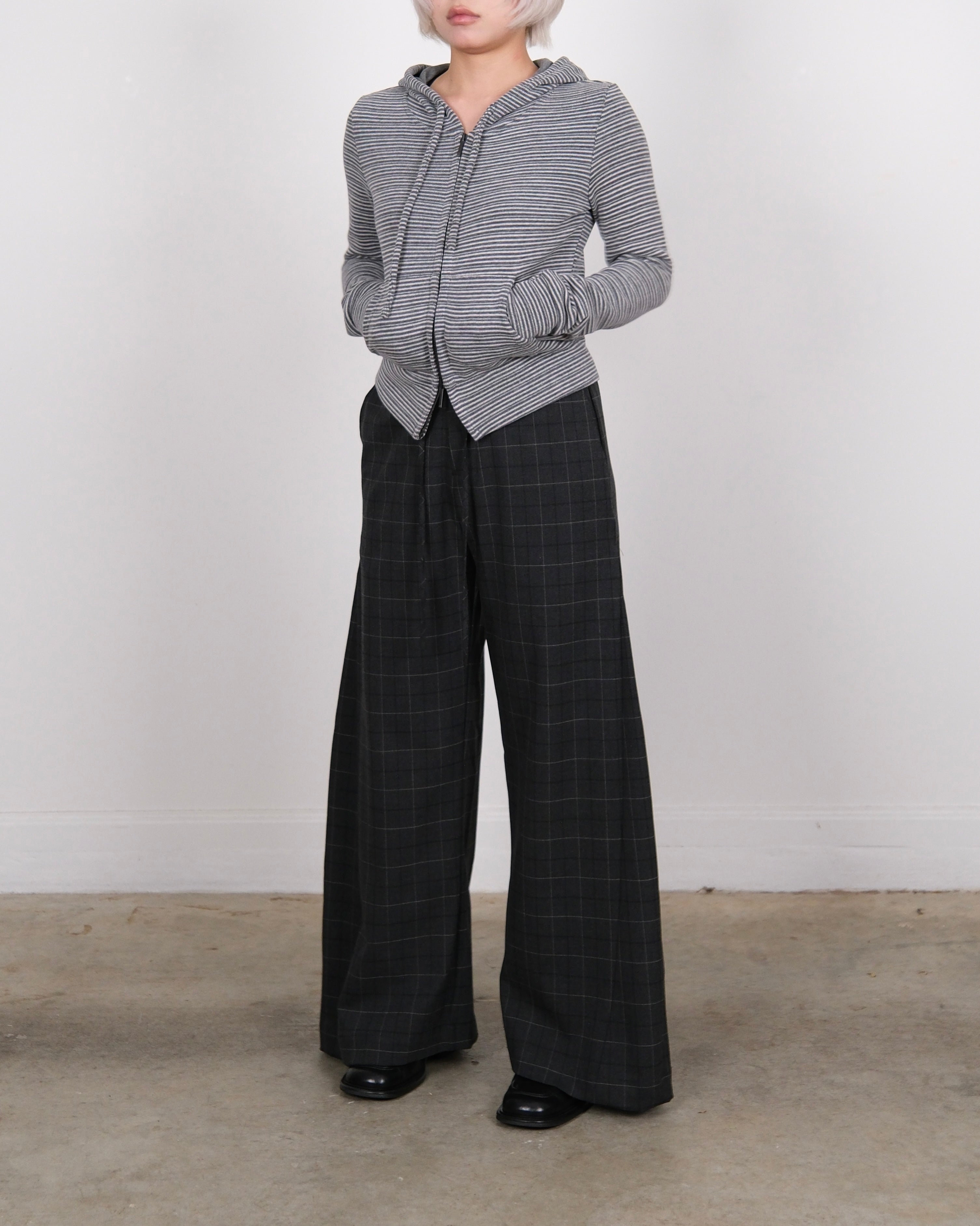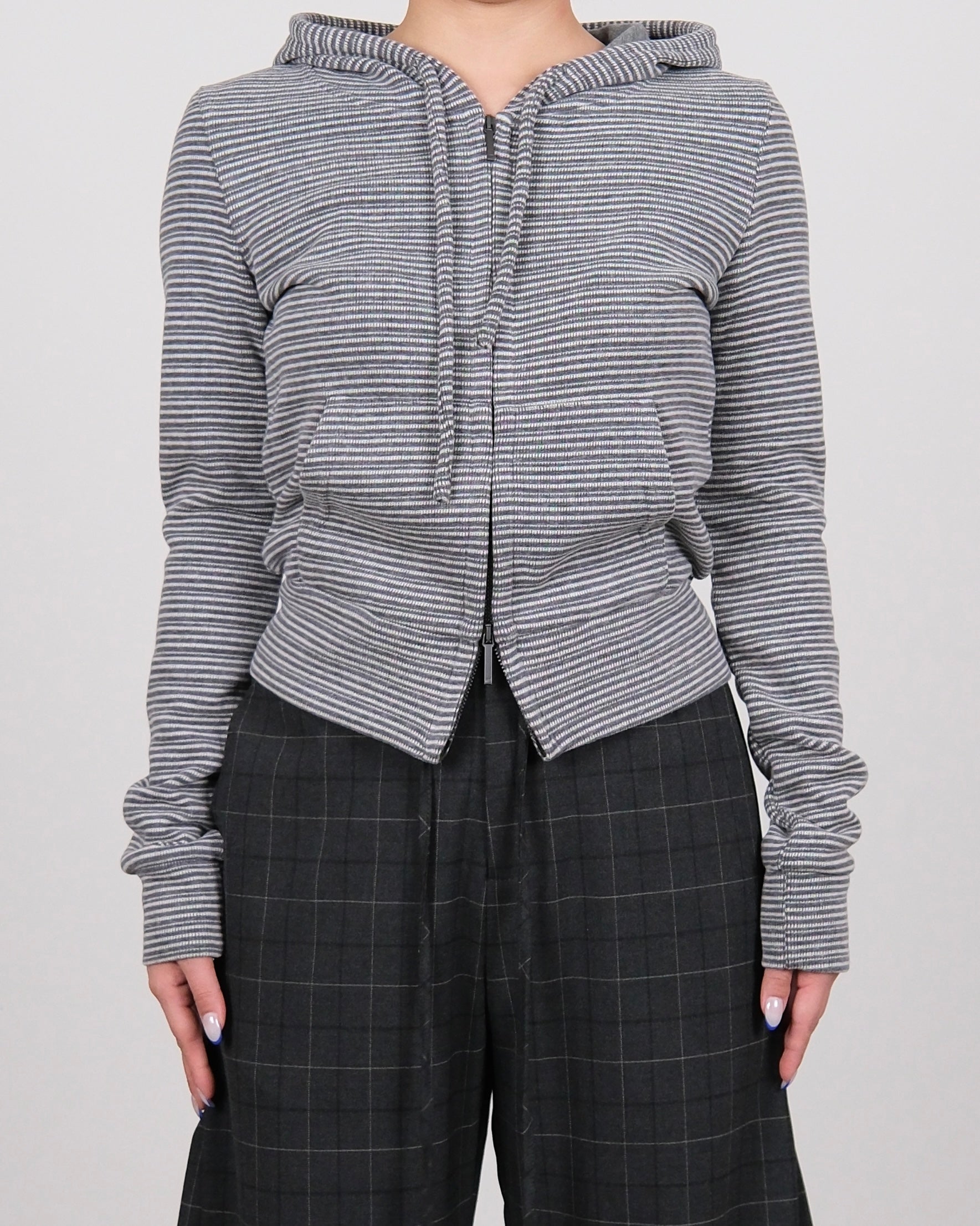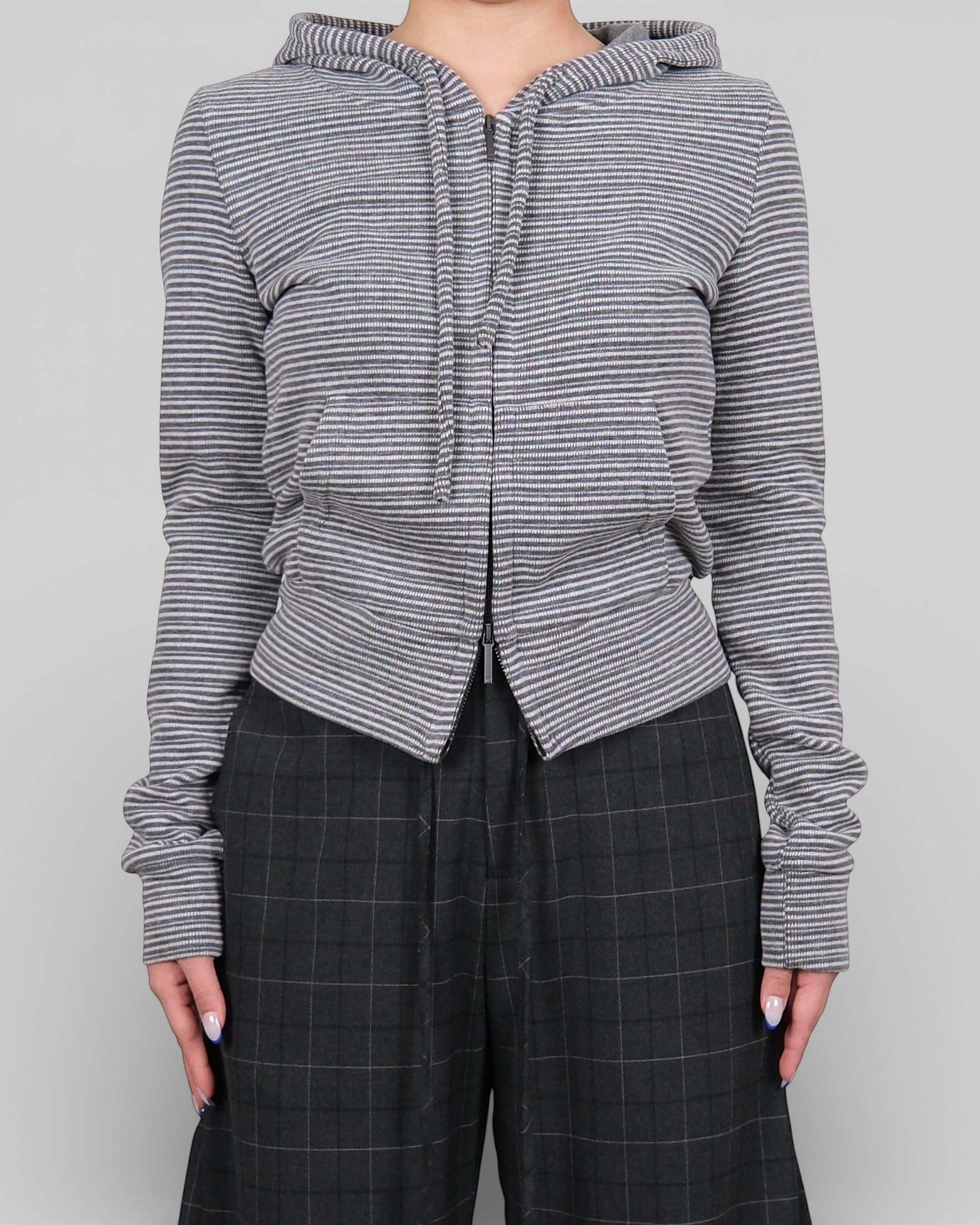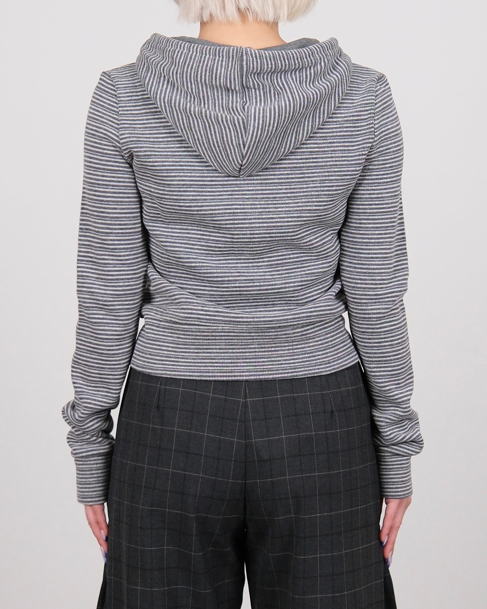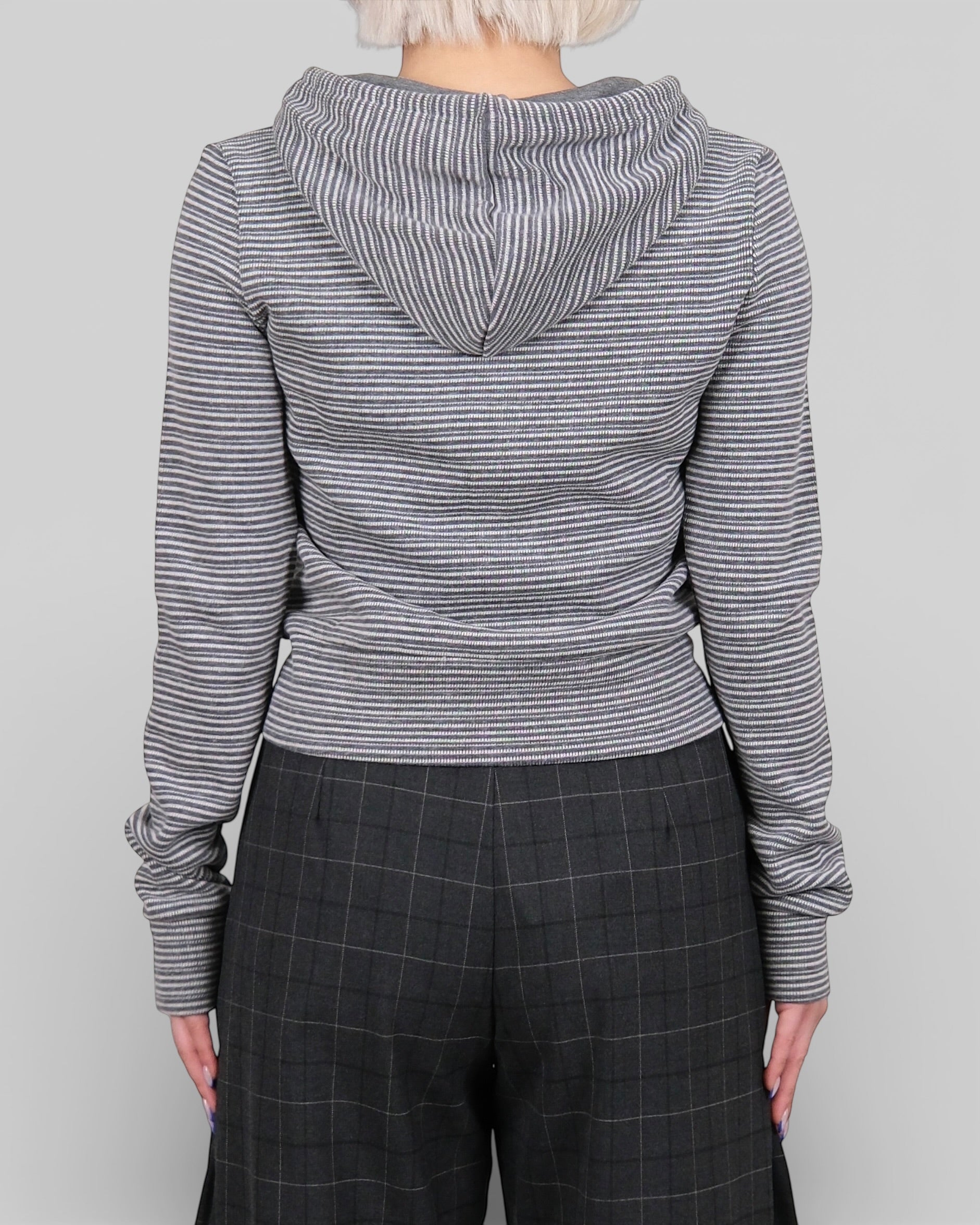 Knitted Stripe Hoodie Grey
