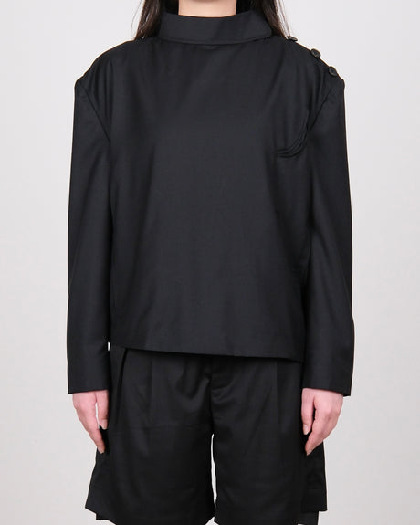 Shoulder Seam Chinese Tunic Suit Jacket Black