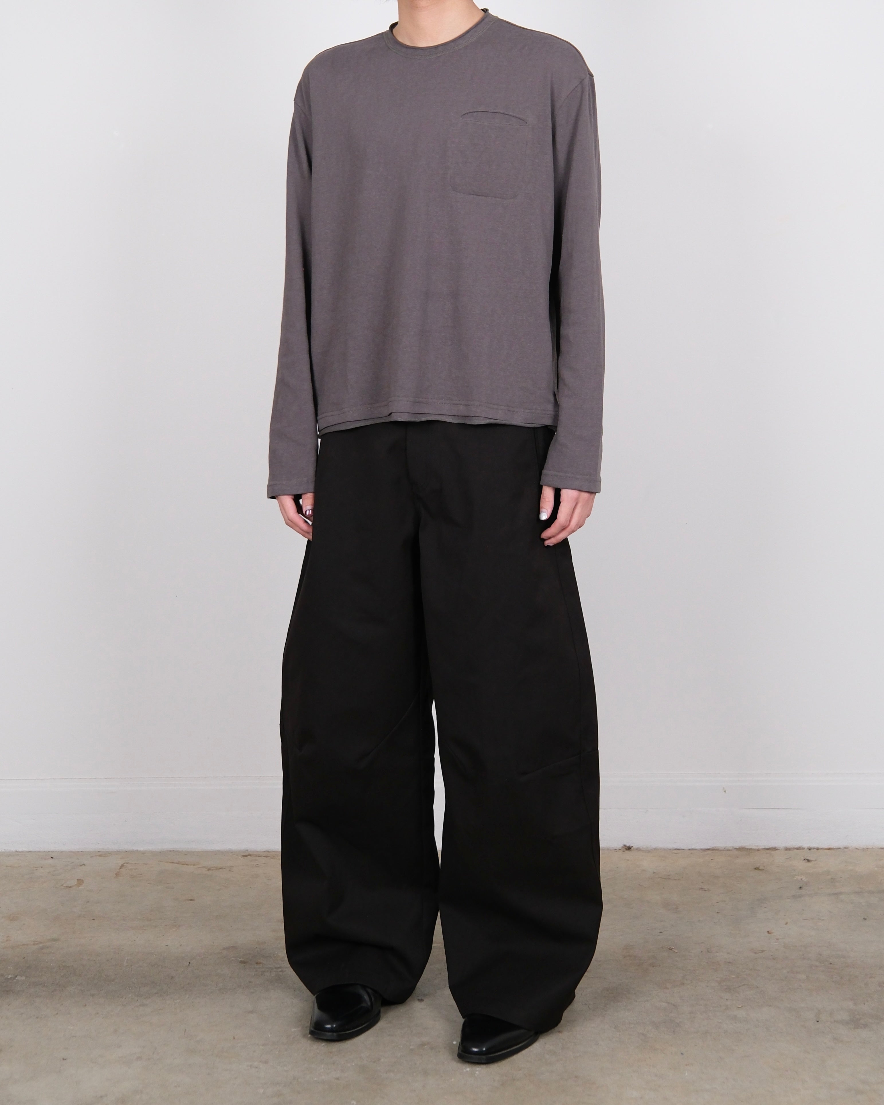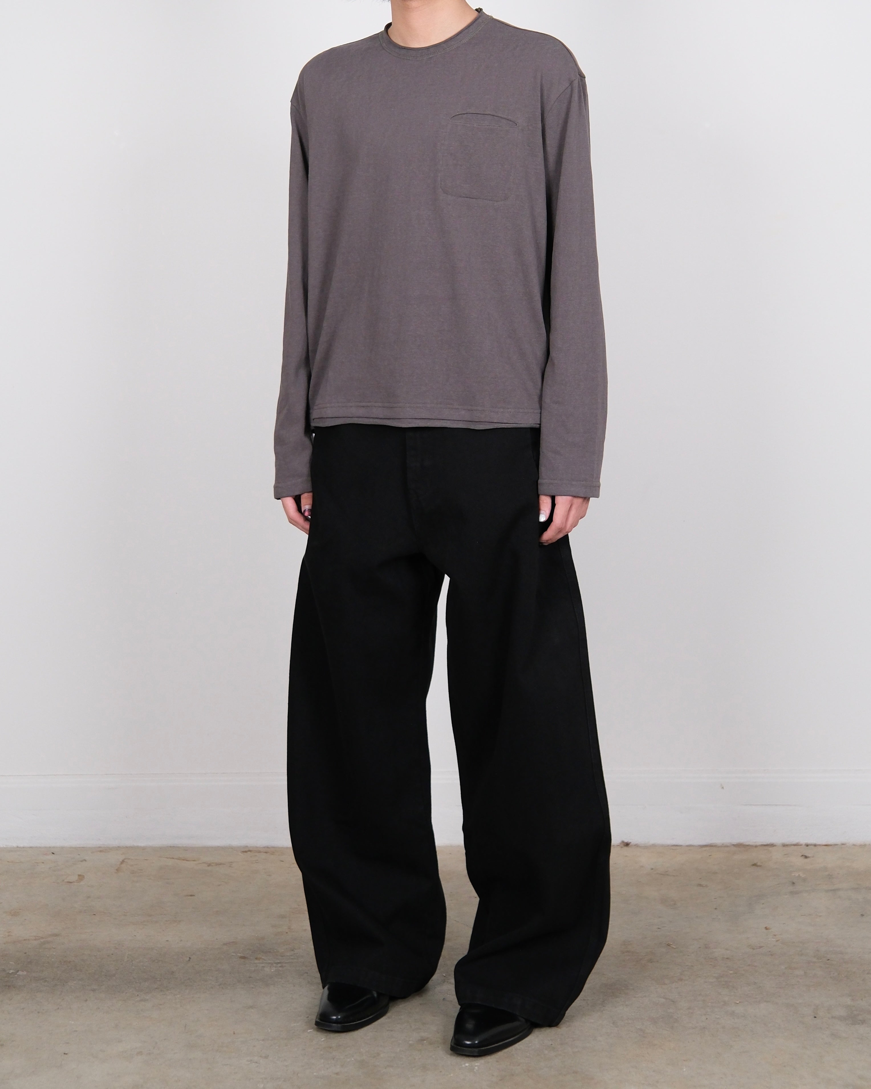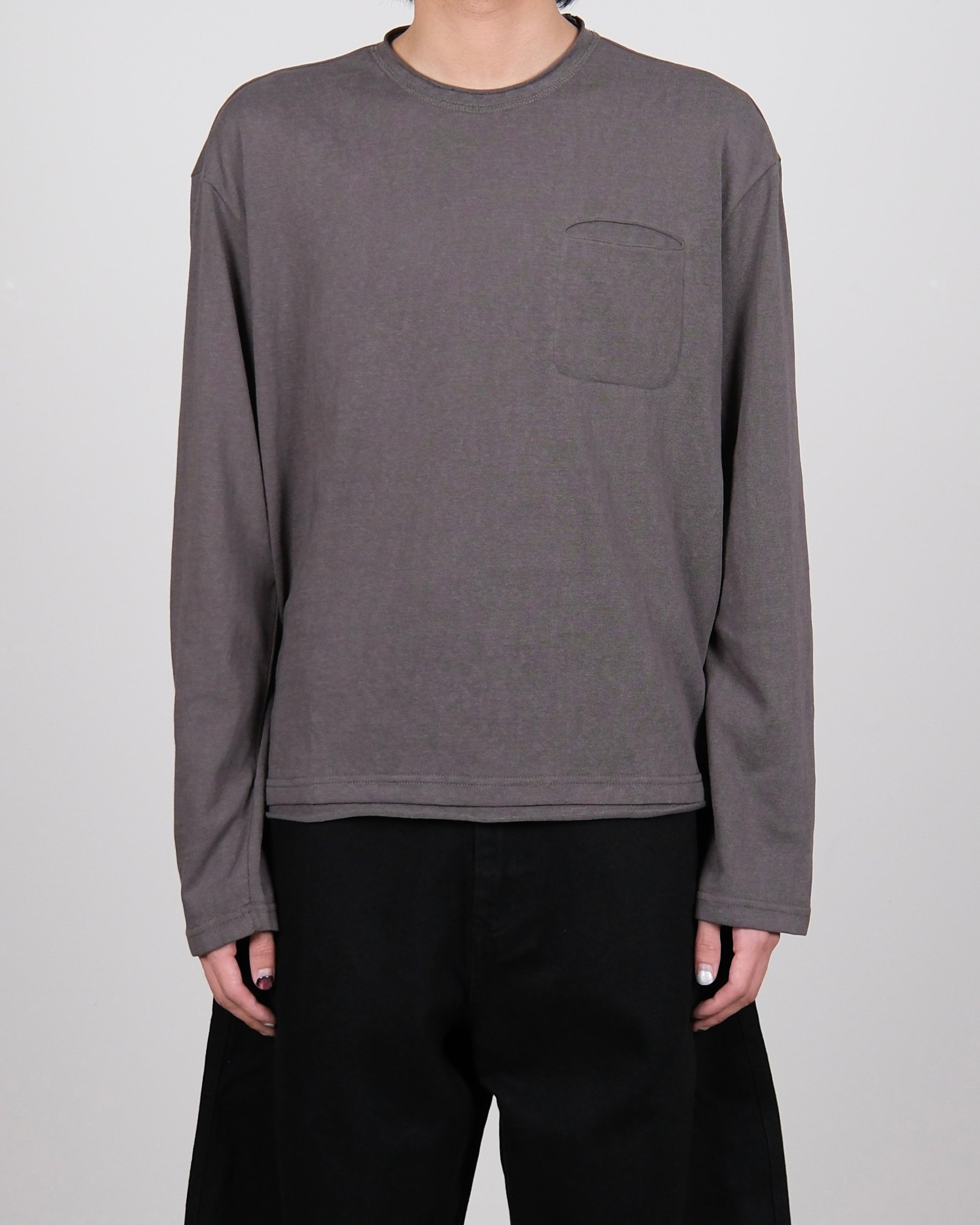 Textured Long-sleeve Pocket Tee 74 Grey
