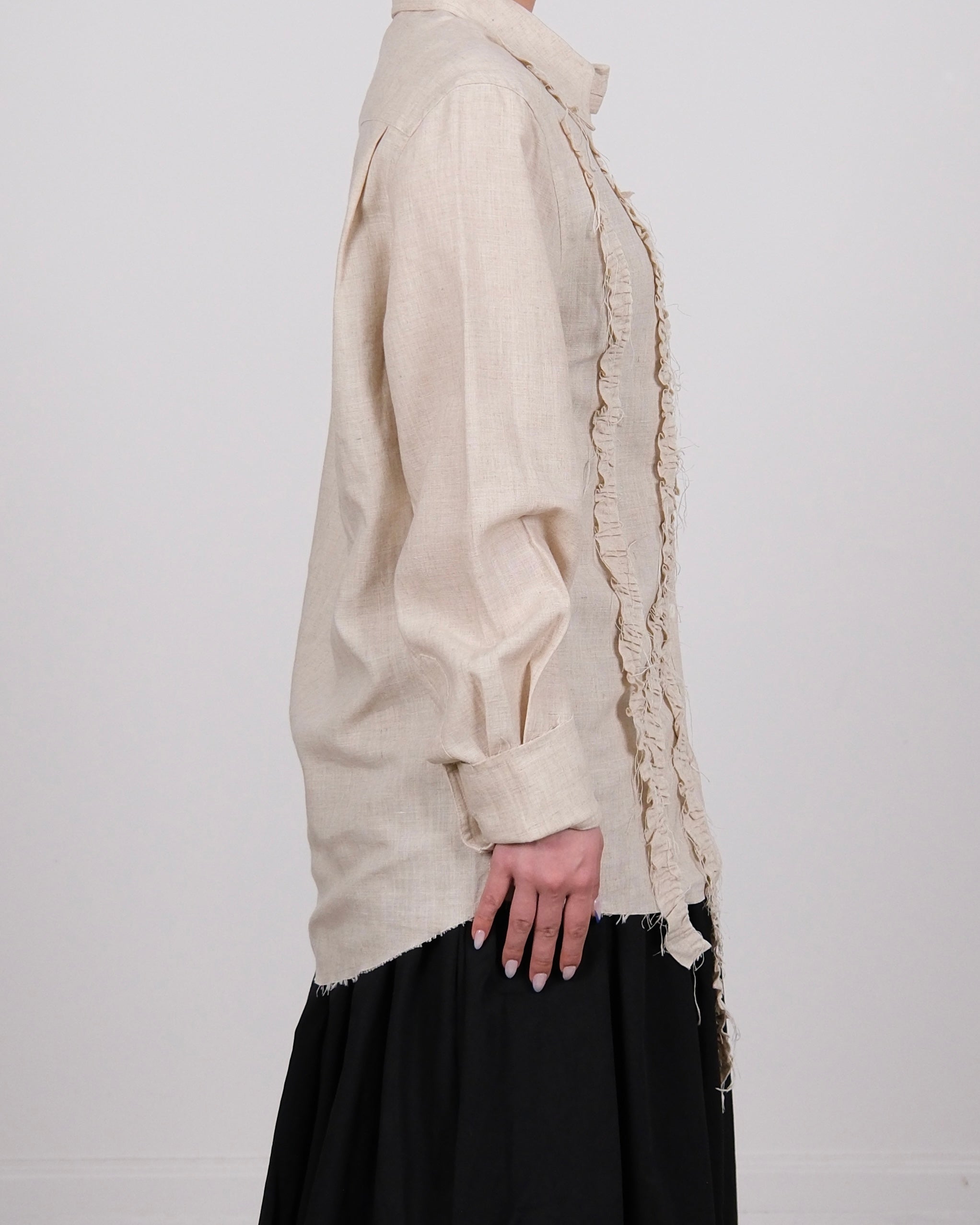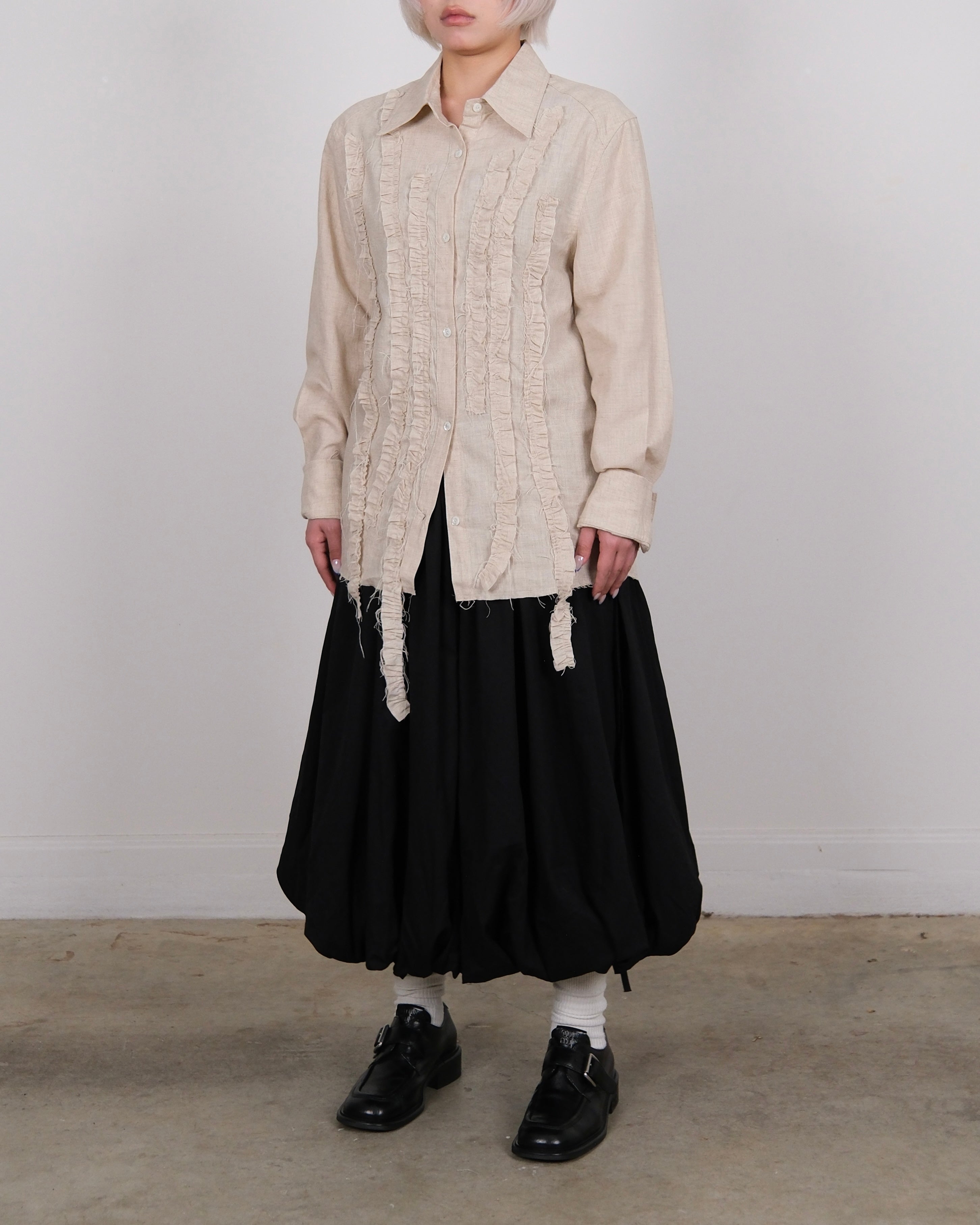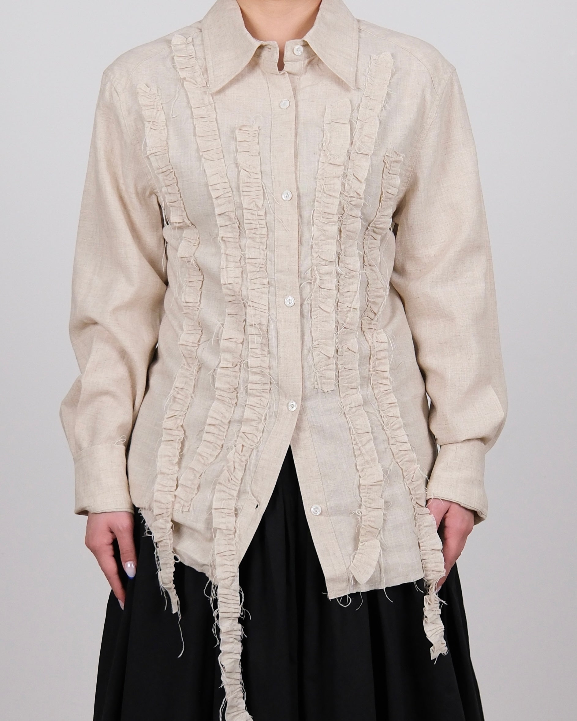 Linen Blend Raffled Shirt Cream (Unisex)