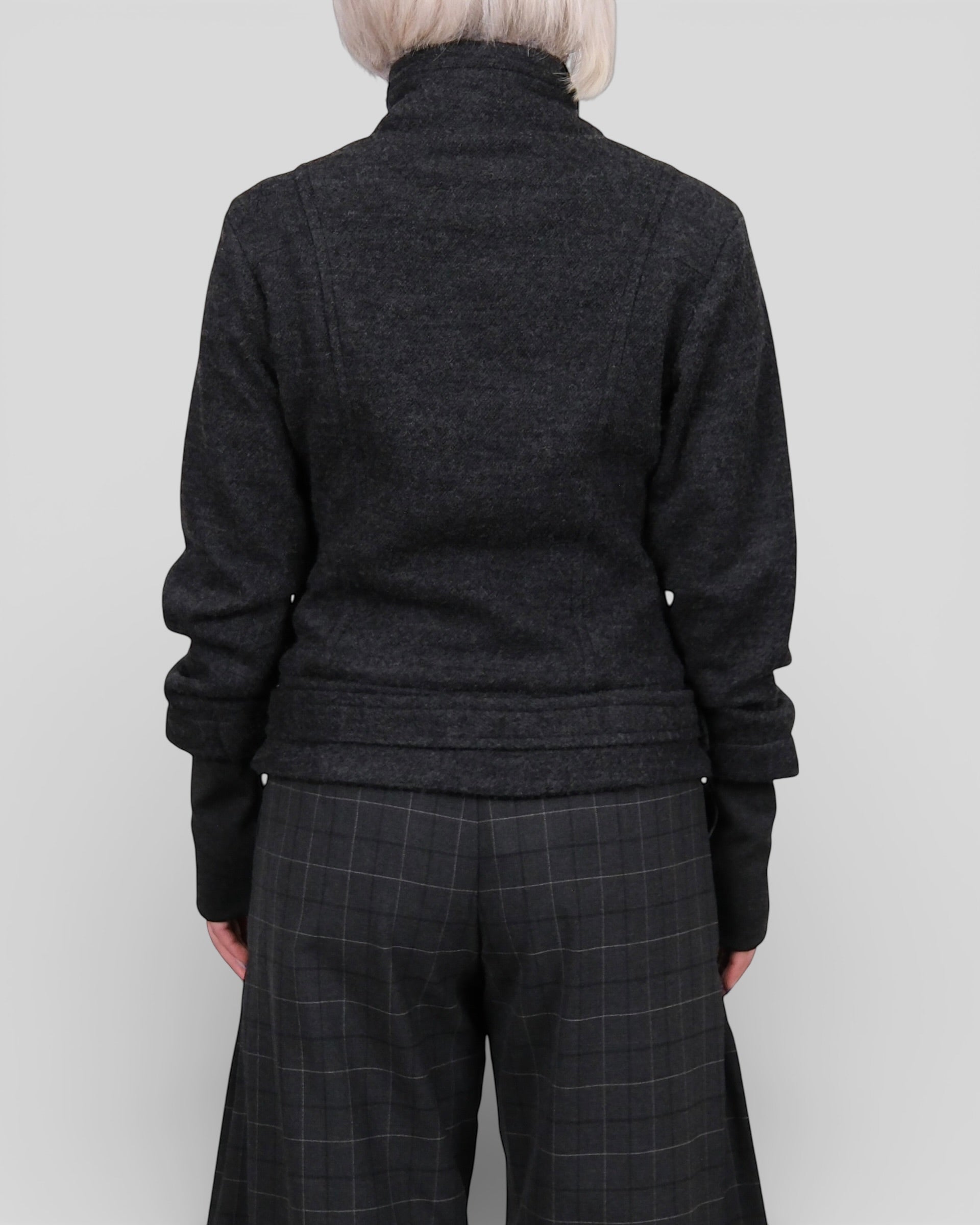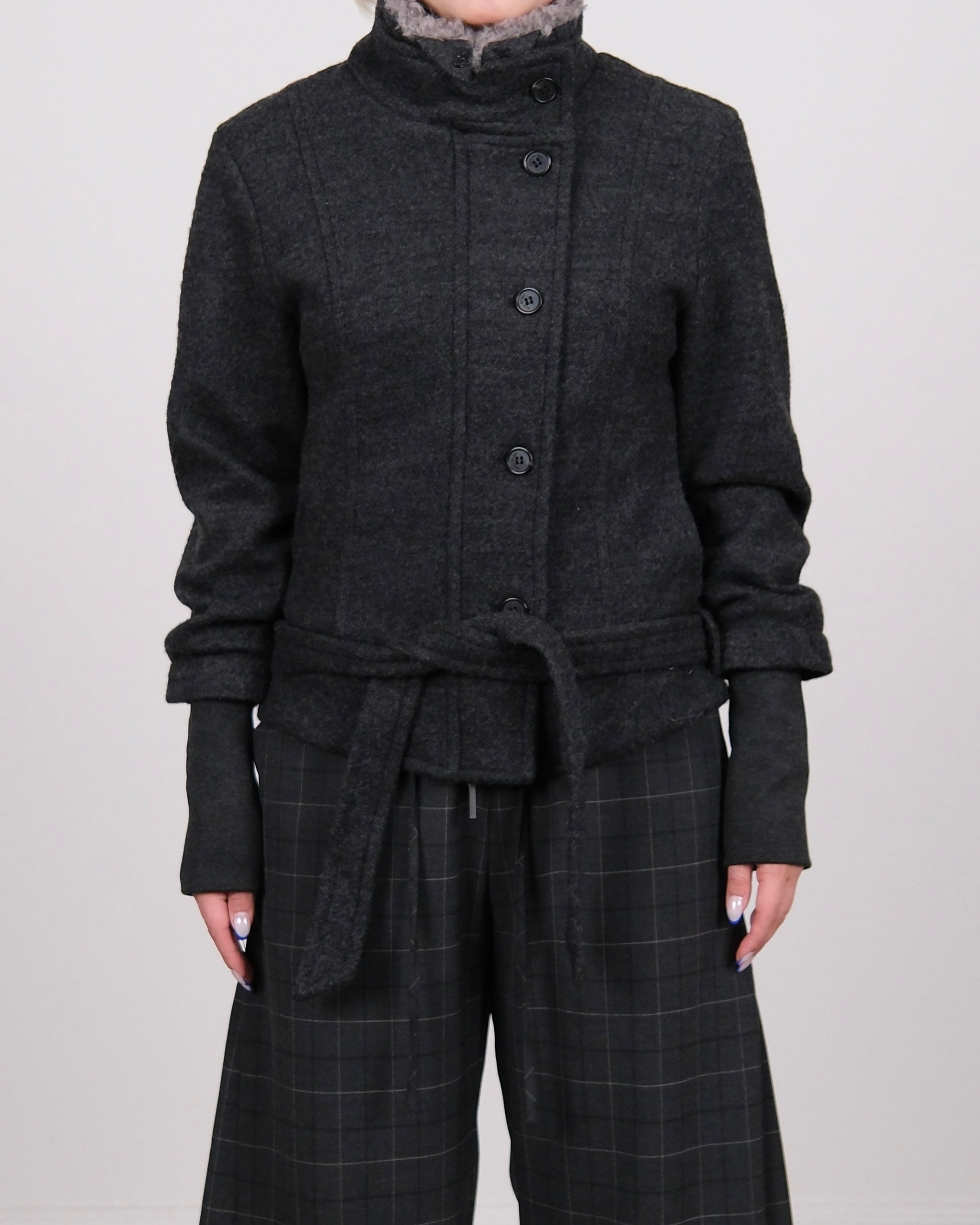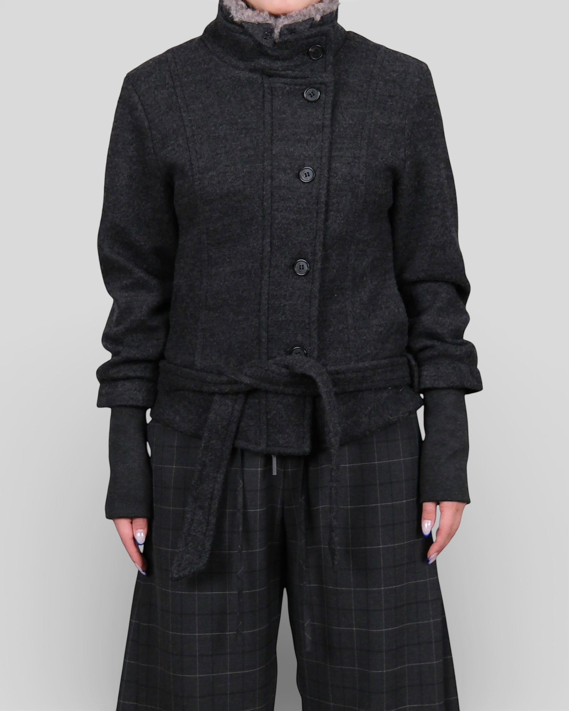 Wool Blend Fur Collar Jacket Dark Grey