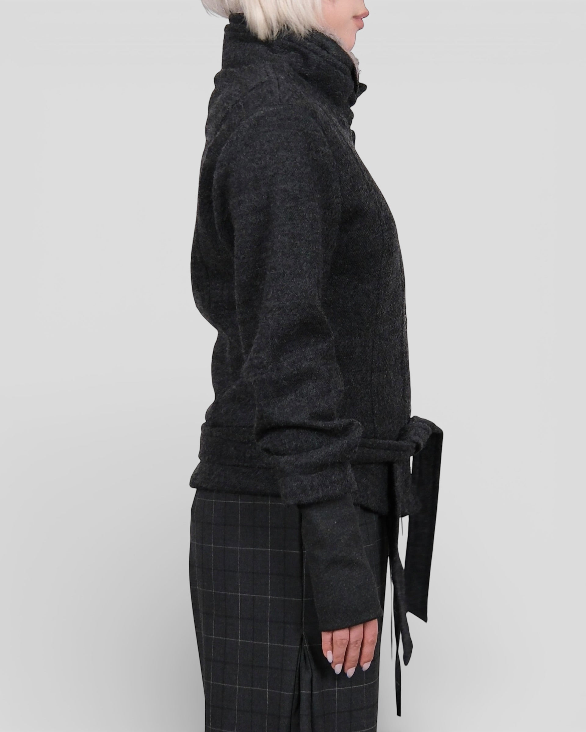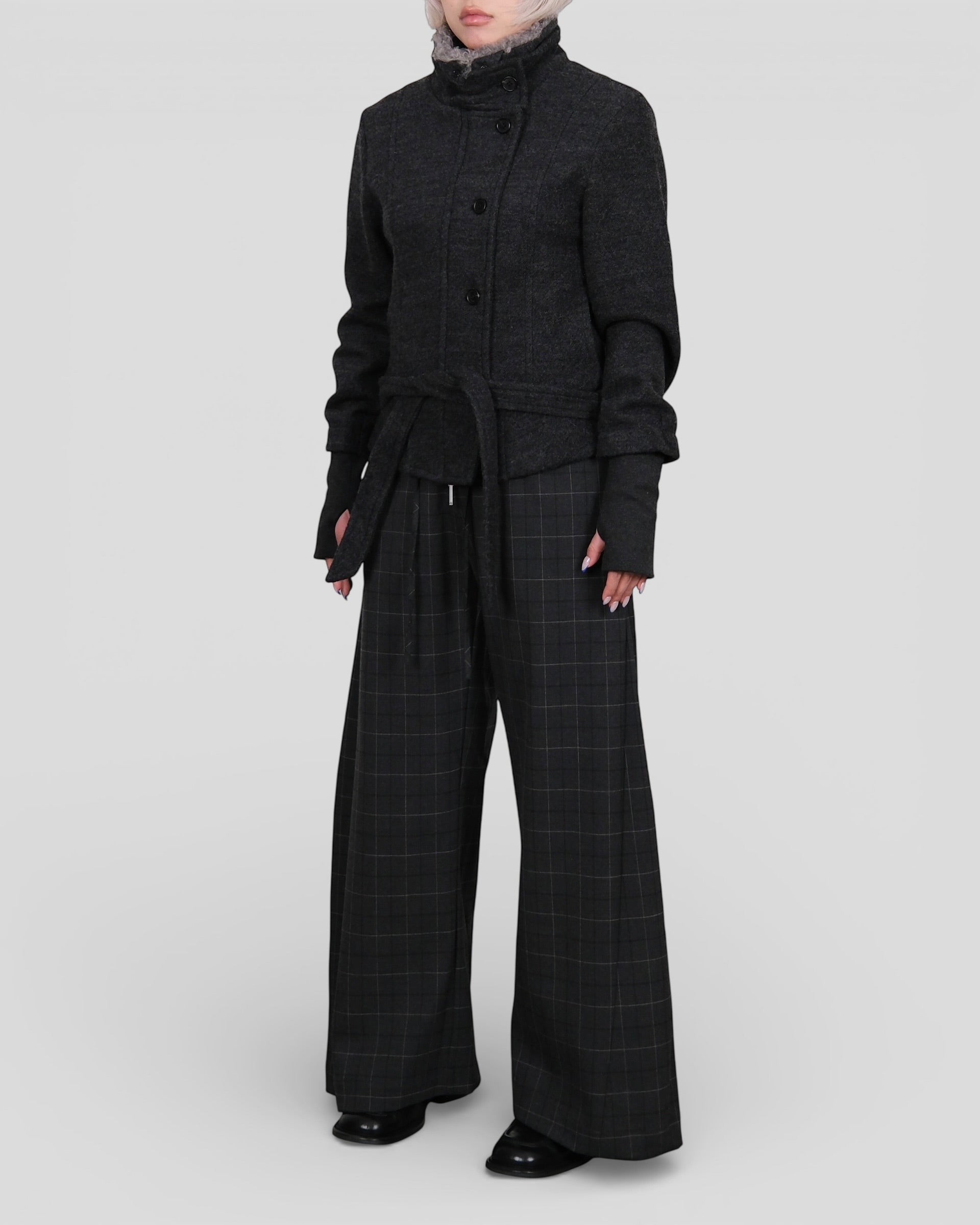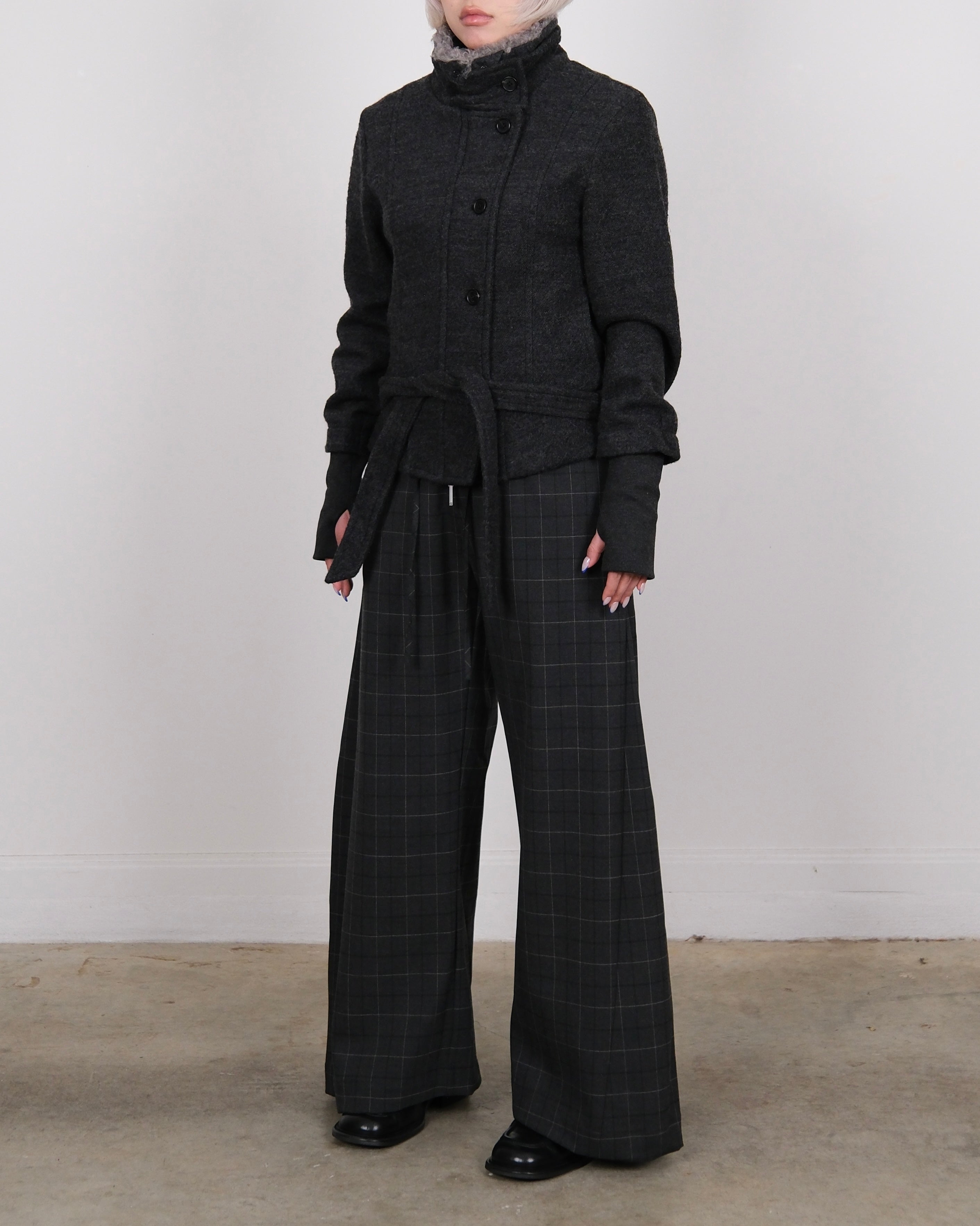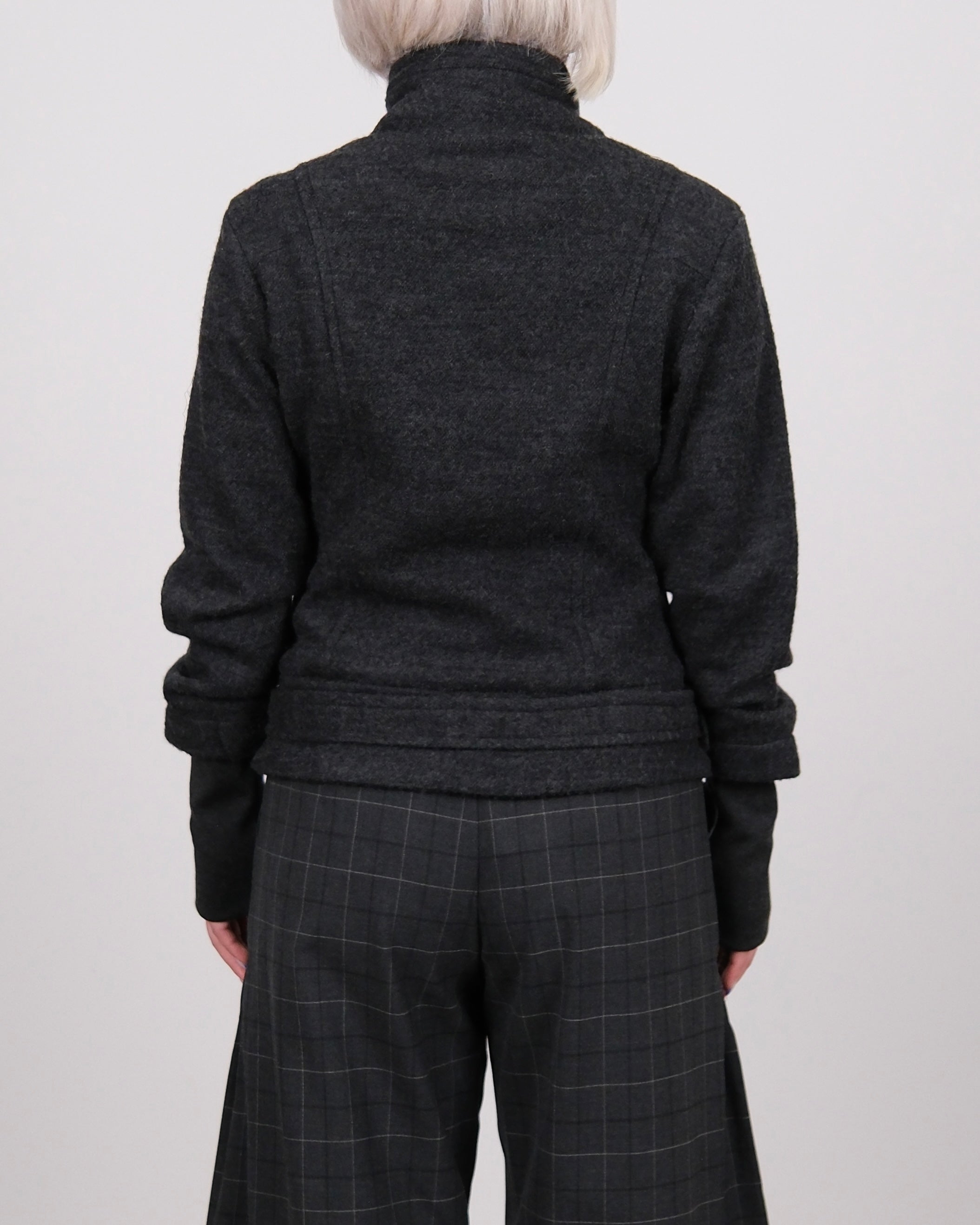 Wool Blend Fur Collar Jacket Dark Grey