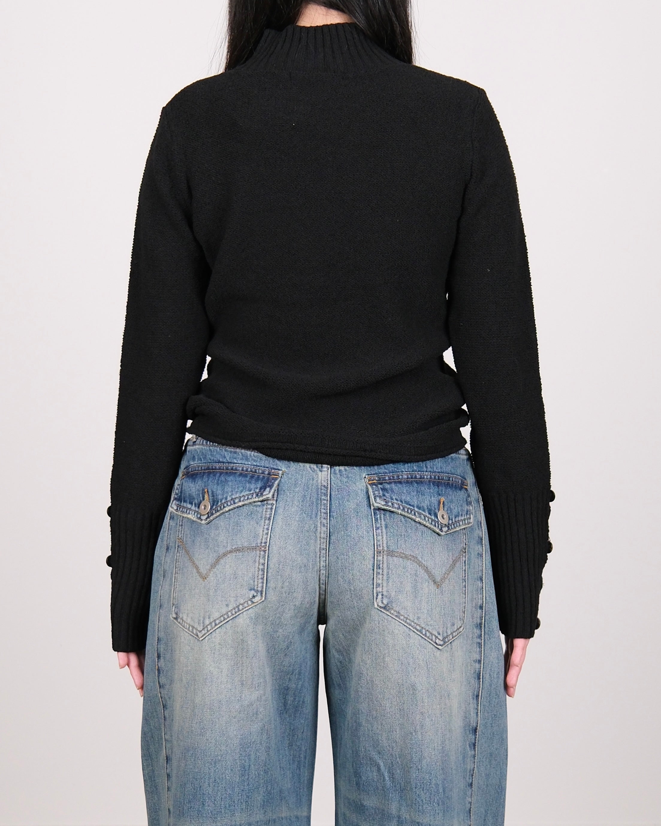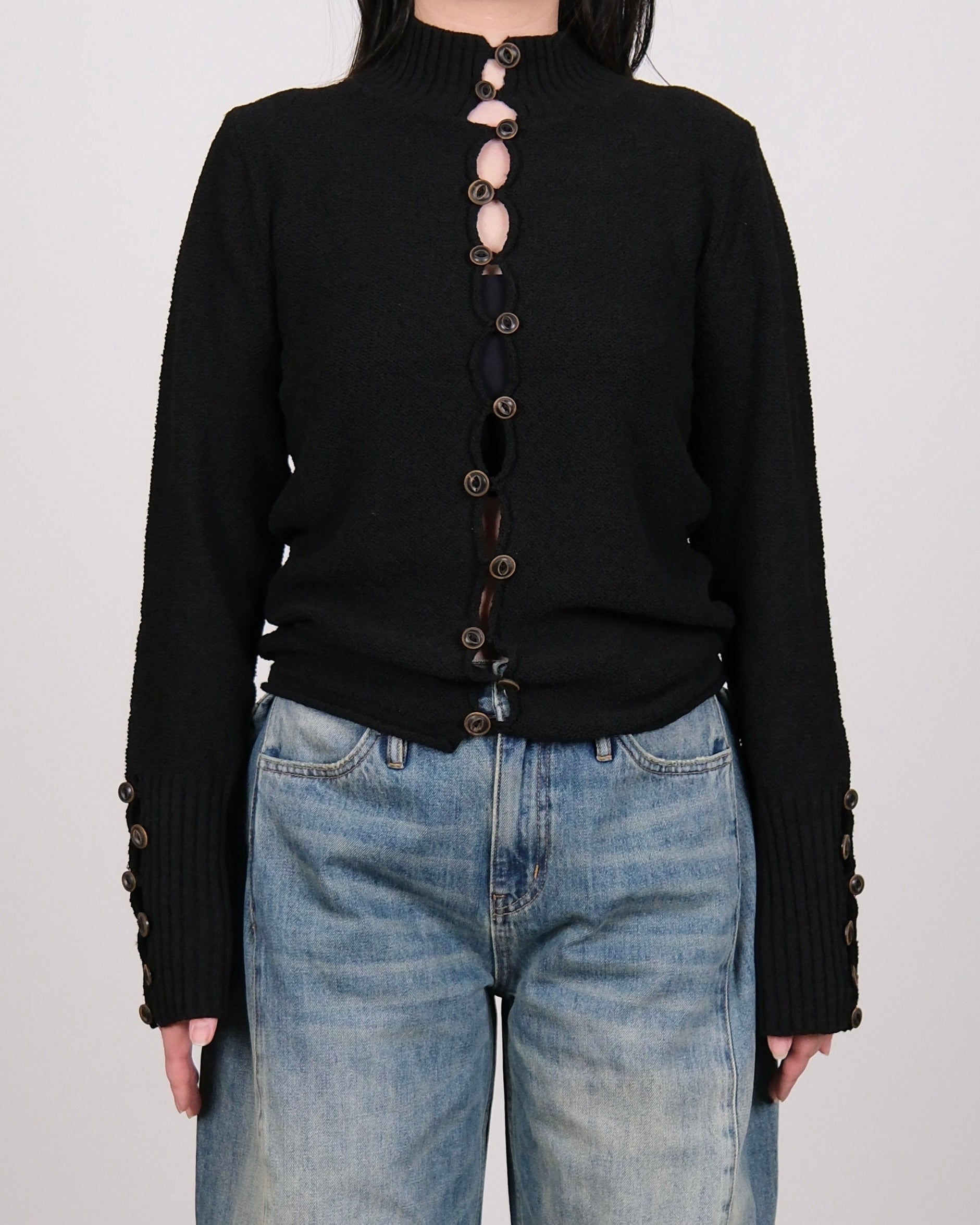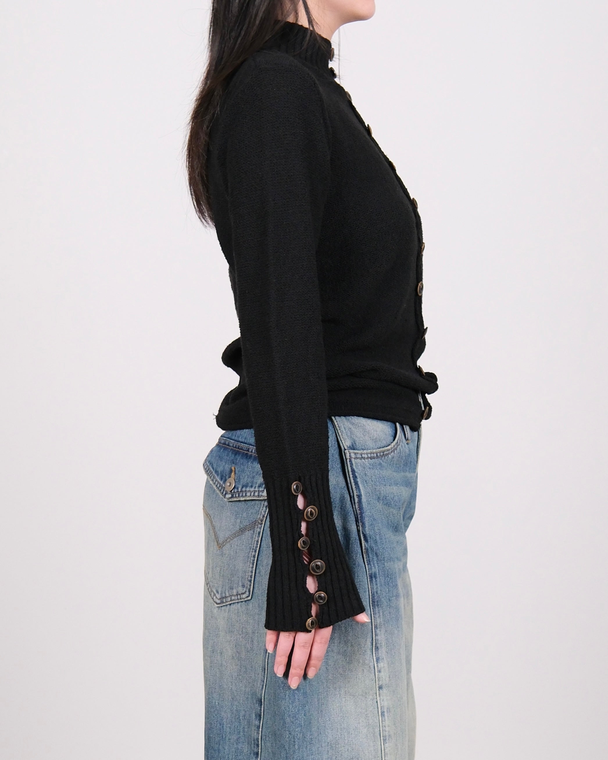 High Neck Knit Cardigan Black