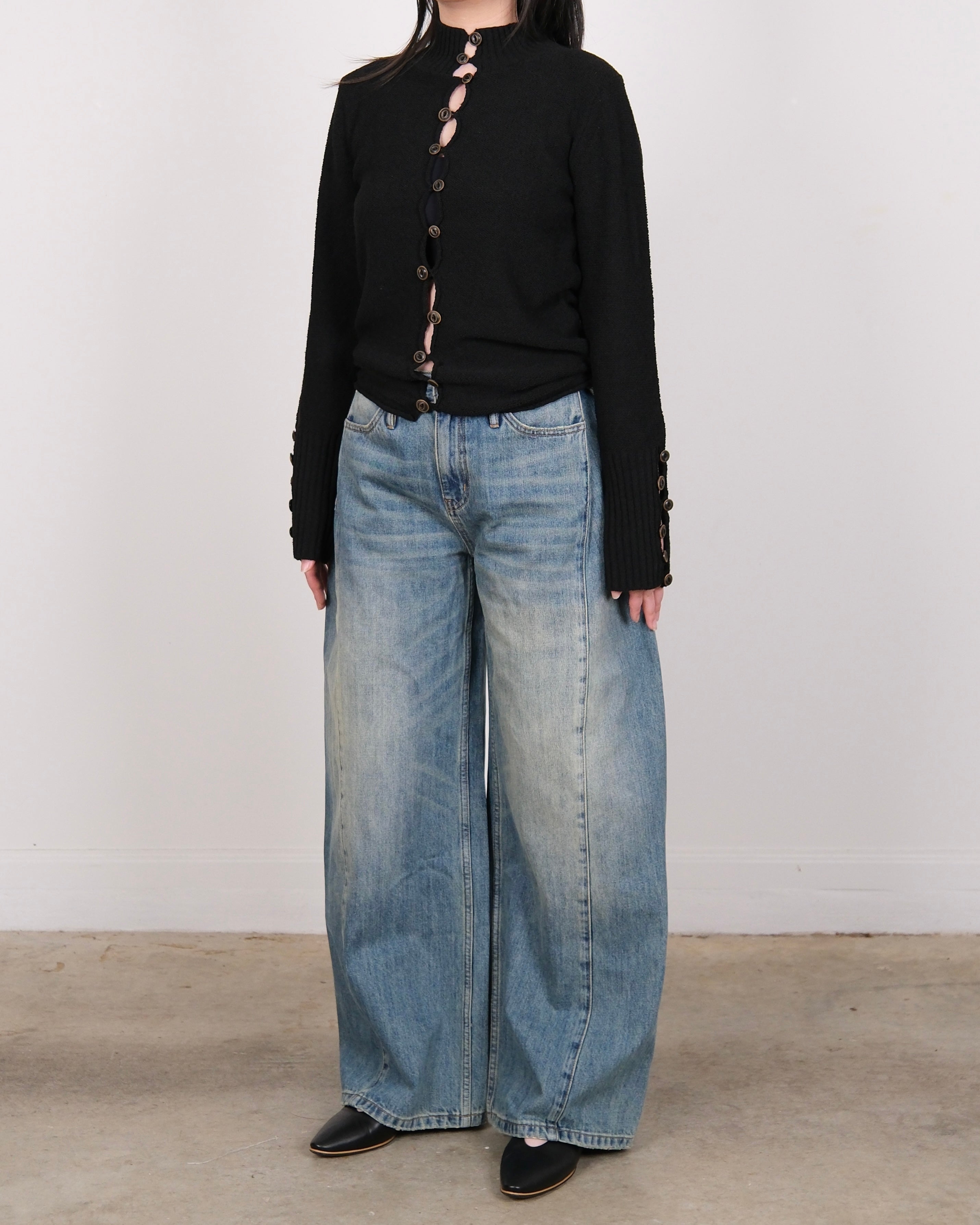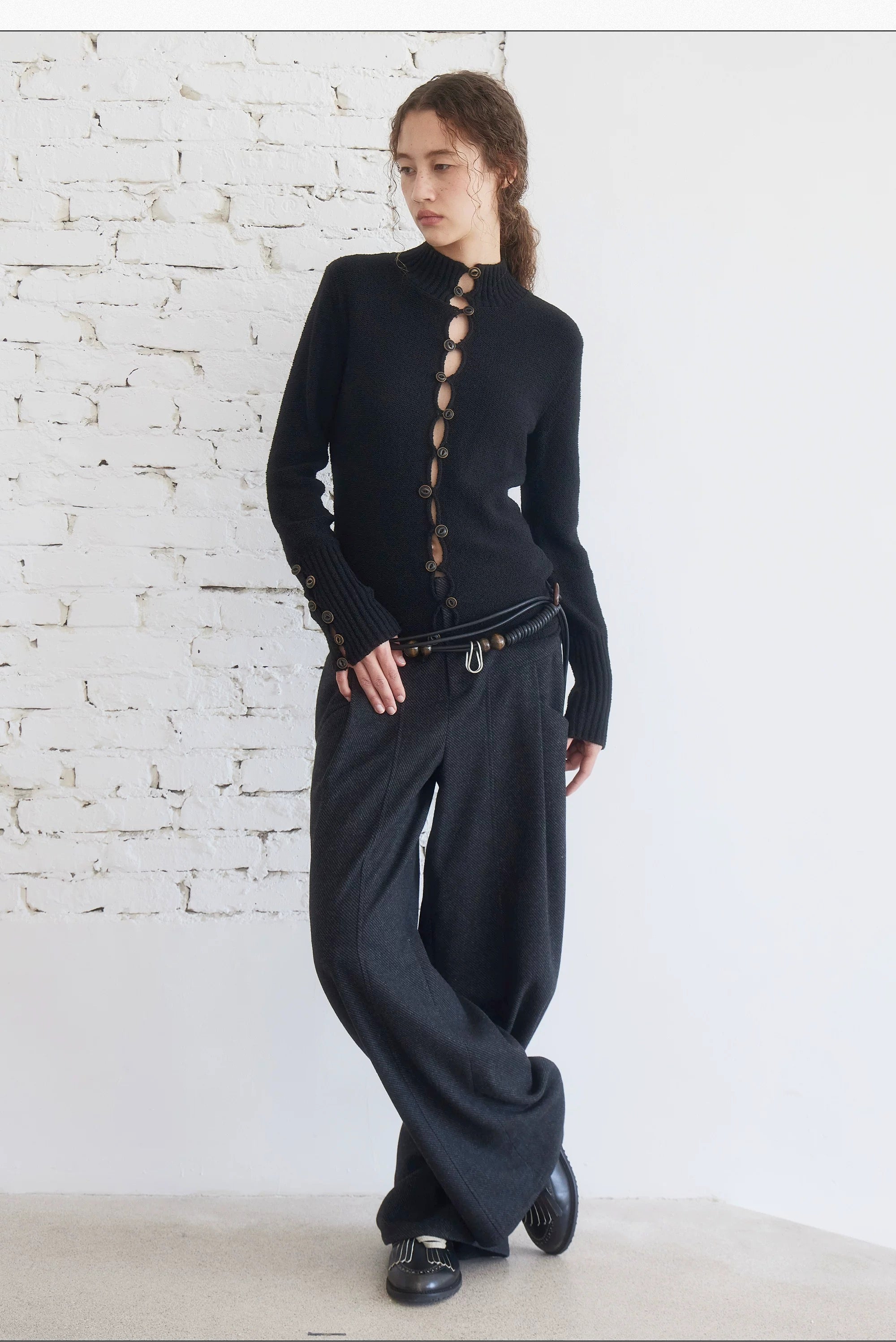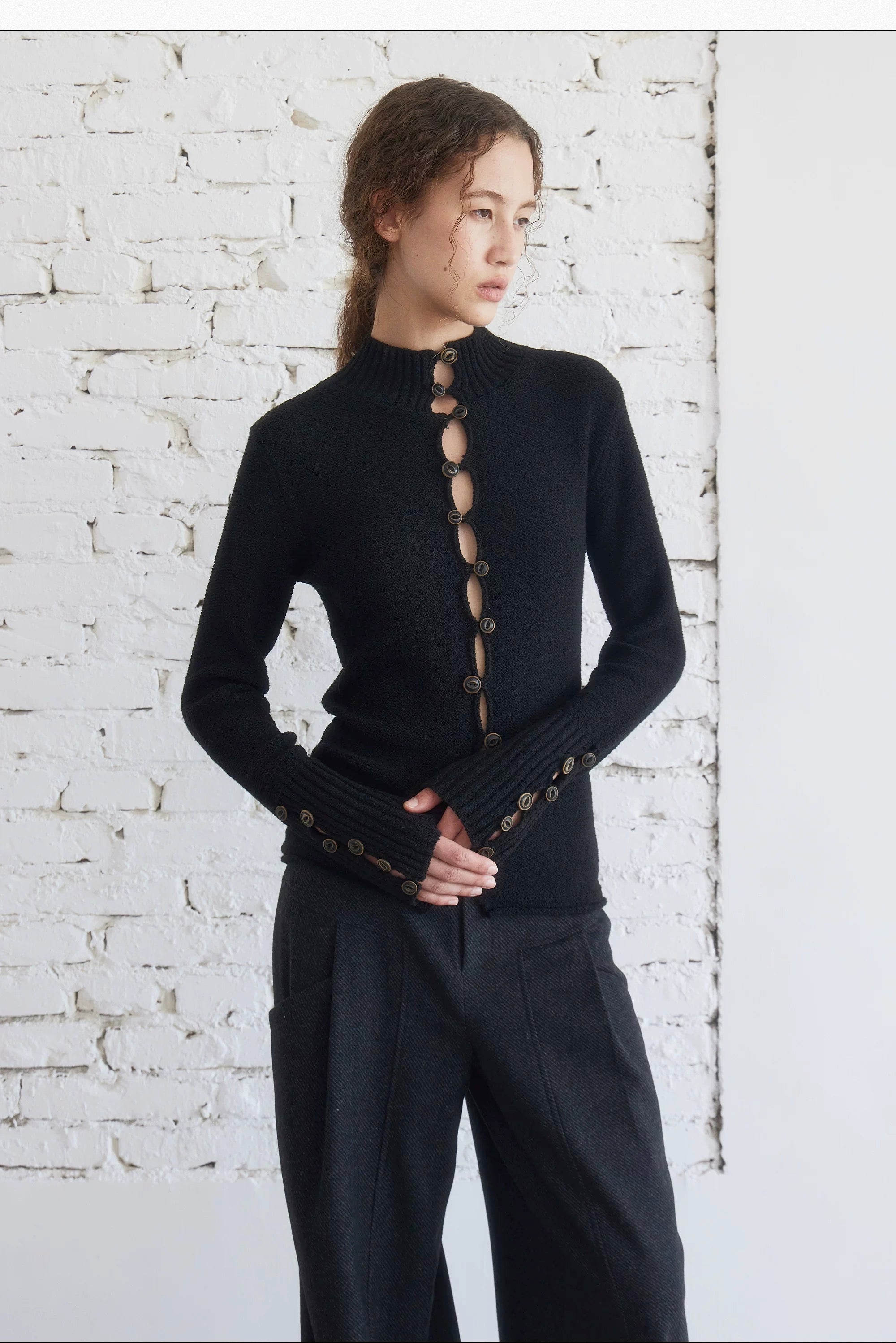 High Neck Knit Cardigan Black