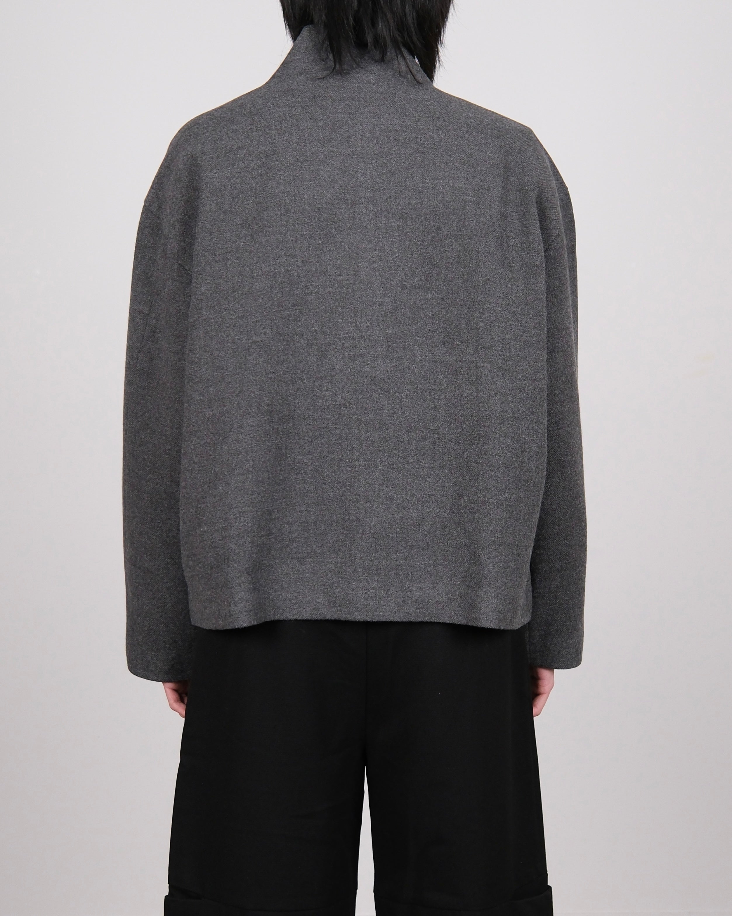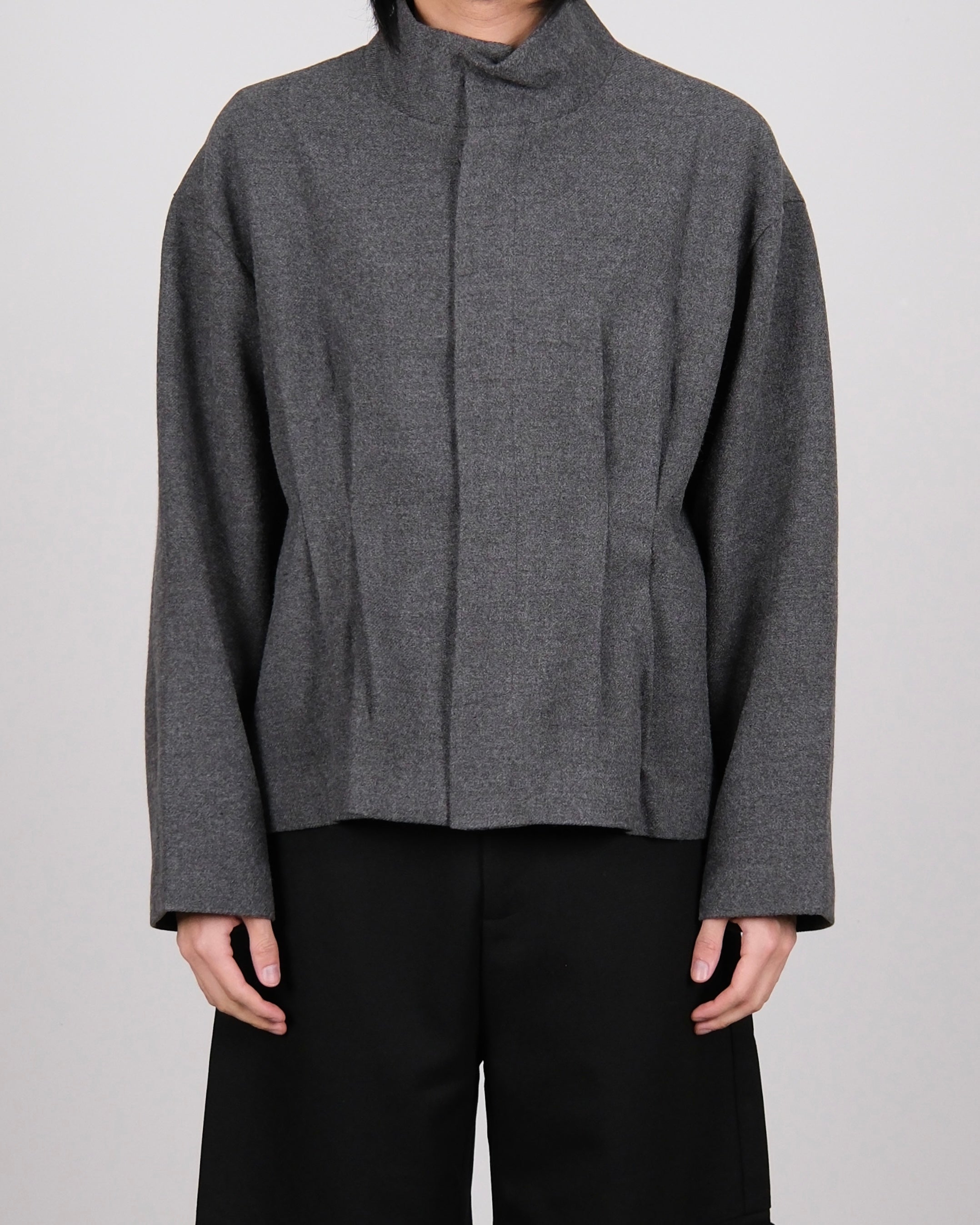 Pleated High Neck Jacket Grey