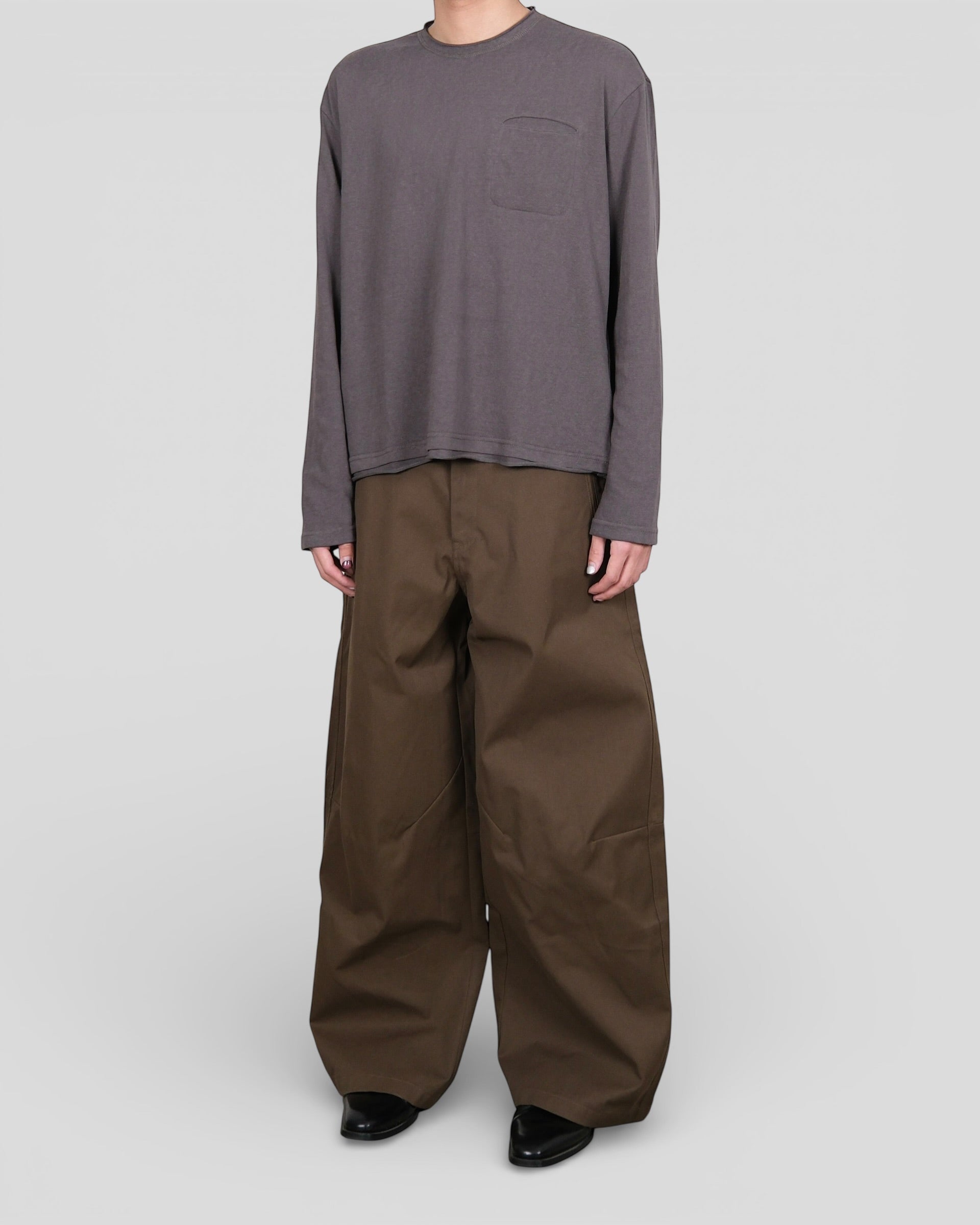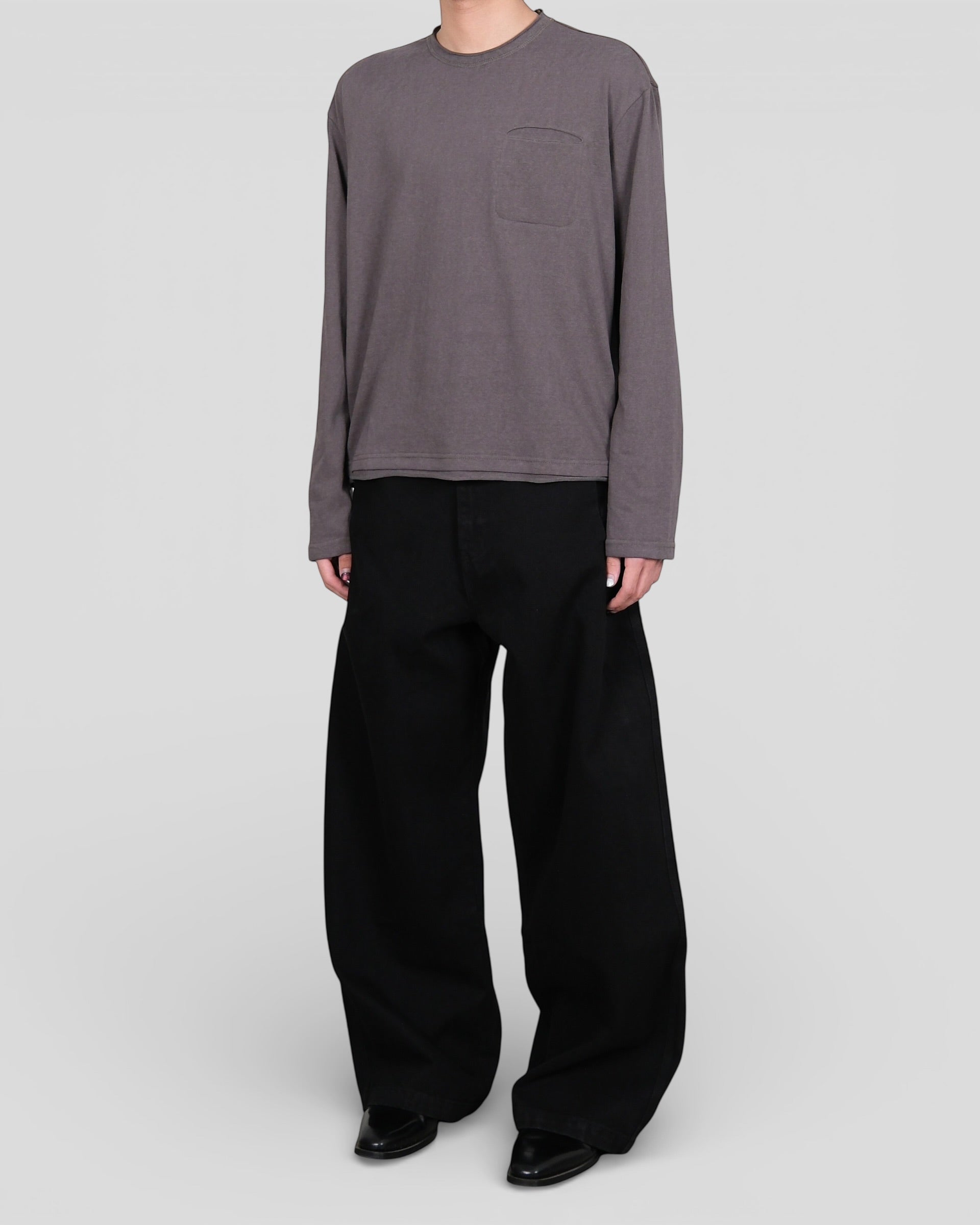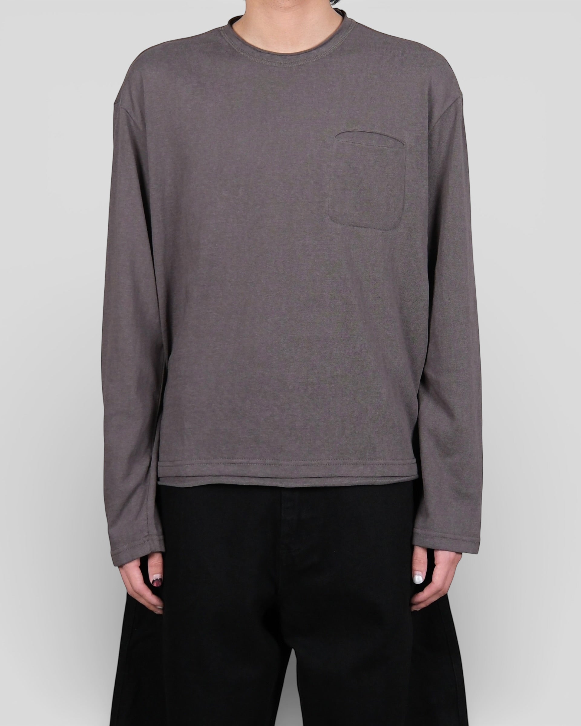 Textured Long-sleeve Pocket Tee 74 Grey