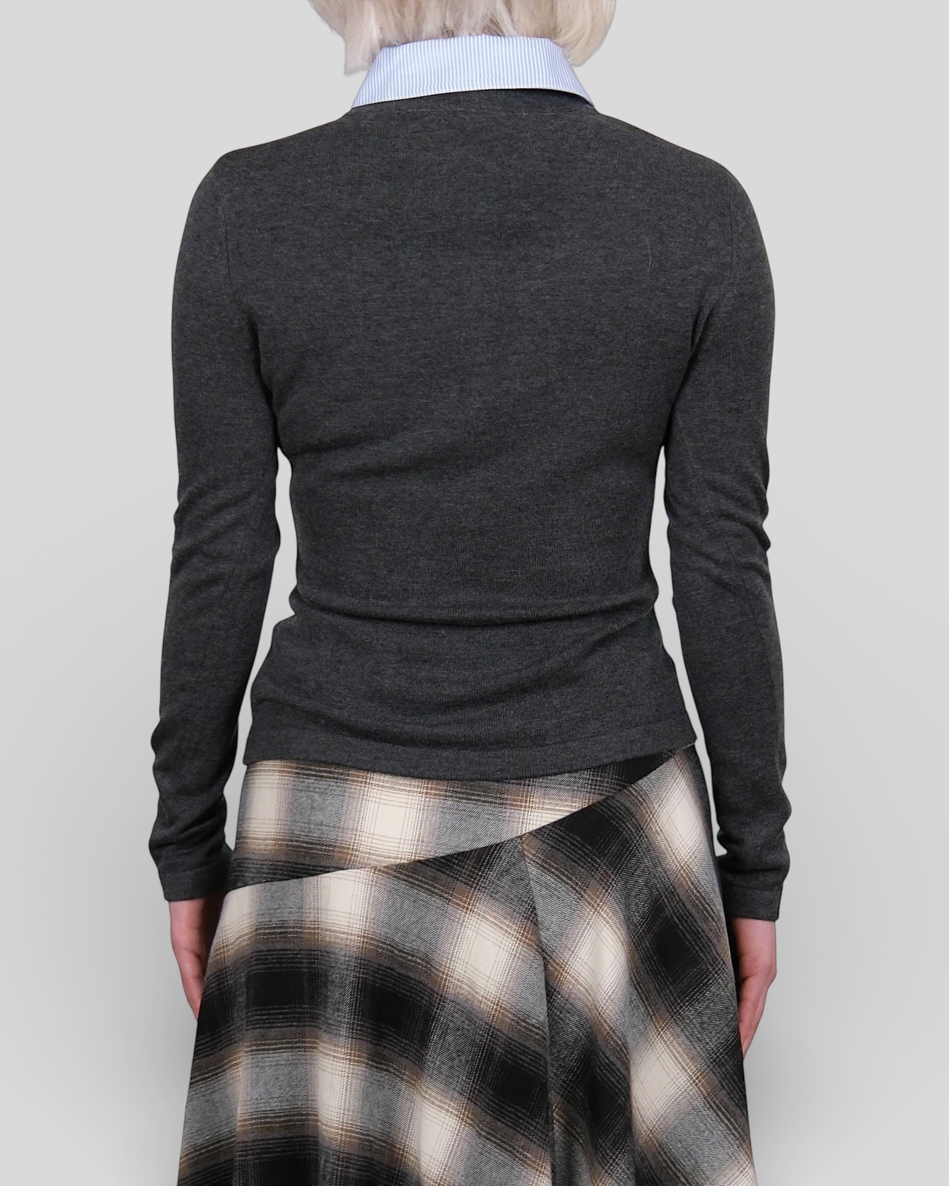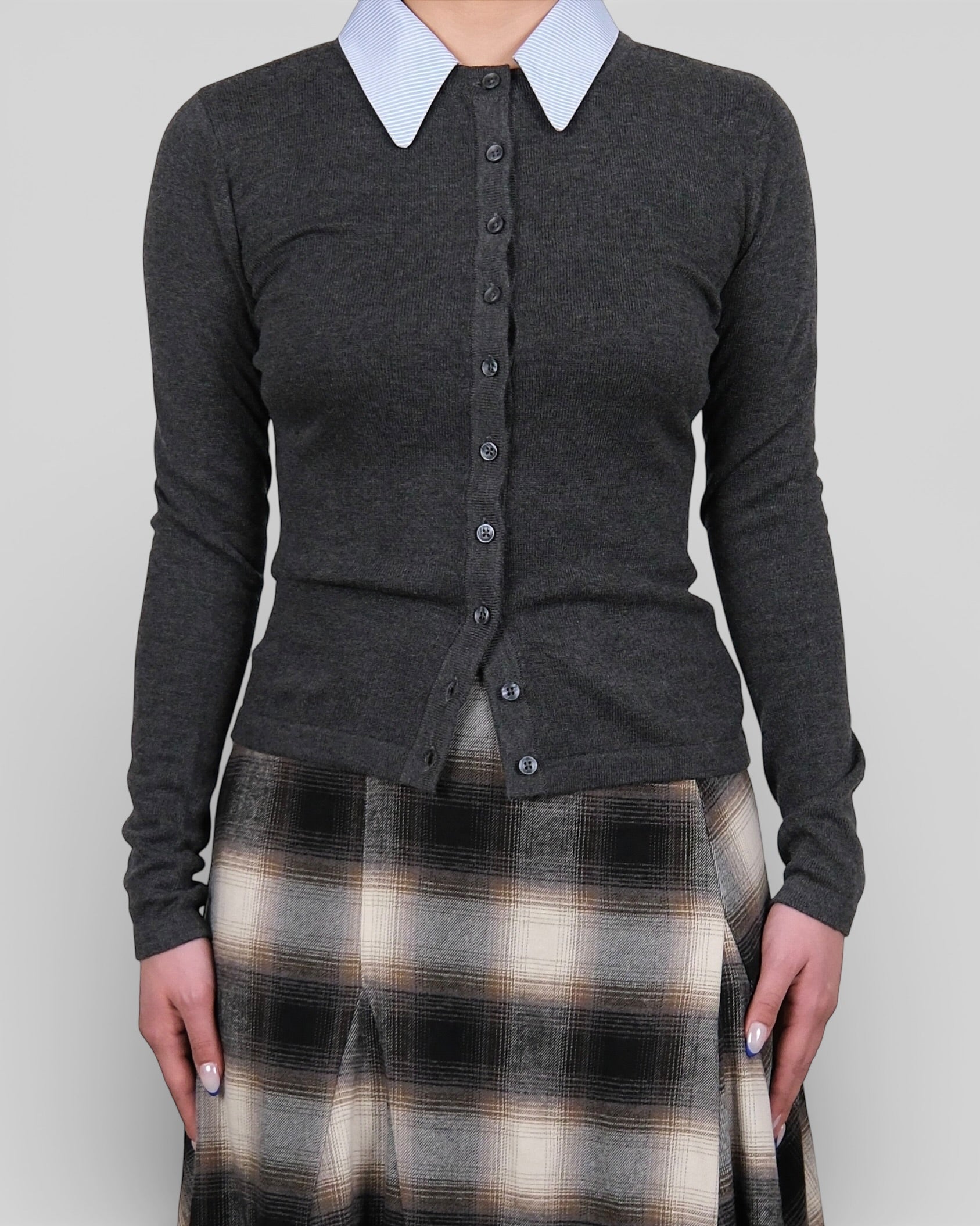 Detachable Collar Knit Cardigan Grey